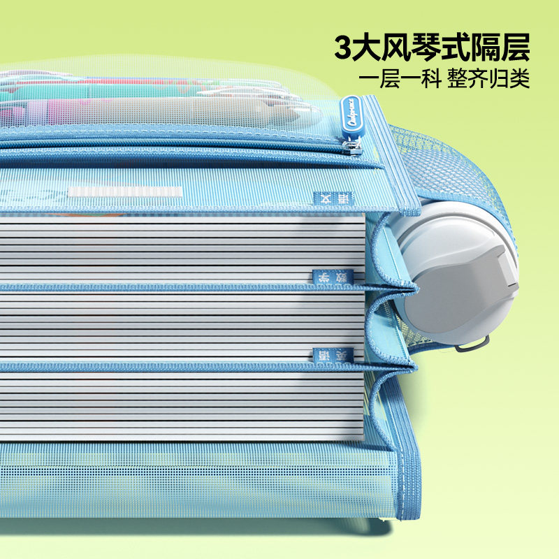 晨光文具学科科目分类袋小学生文件袋拉链式试卷收纳袋透明网纱双层大容量书袋作业资料a4考试专用袋票据产检