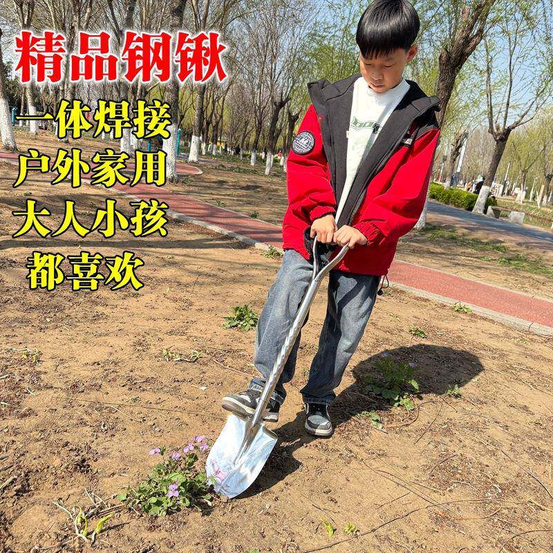 不锈钢锹铲子园艺钢锹家用铁锨加厚挖土种菜户外野营白翻土长把