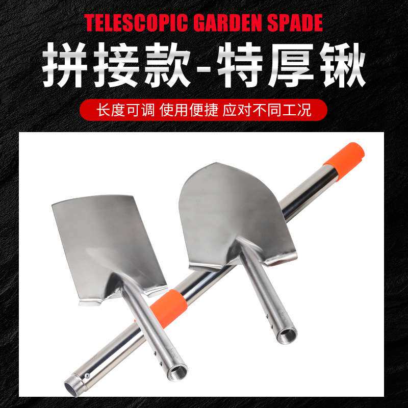 特厚铁锹家用铁锨户外挖土可伸缩车用折叠铁锨铲子随车不锈钢加重