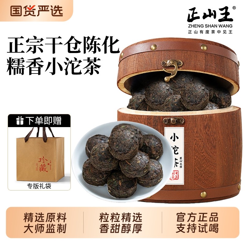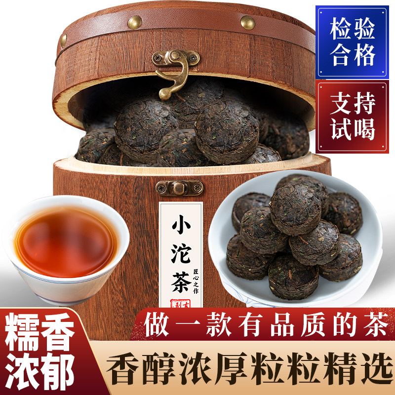 云南糯米香普洱茶糯香小沱茶饼熟茶陈年糯香黑茶叶礼盒木桶装500g