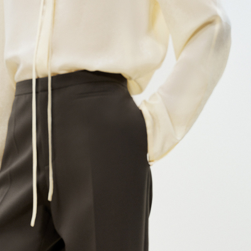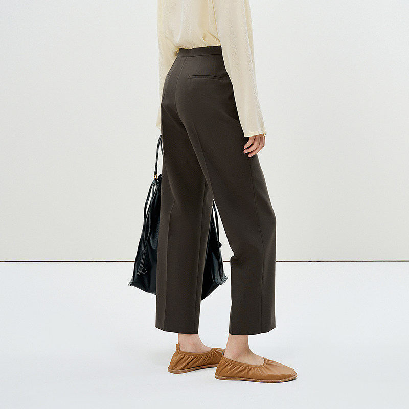 LESS春休闲绵羊毛修身利落长裤简约九分西装锥形裤女2P1E10480