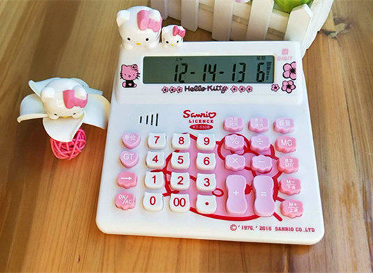 大号韩版KT猫计算器器可爱卡通猫头公仔计算机可弹奏音乐调节时间