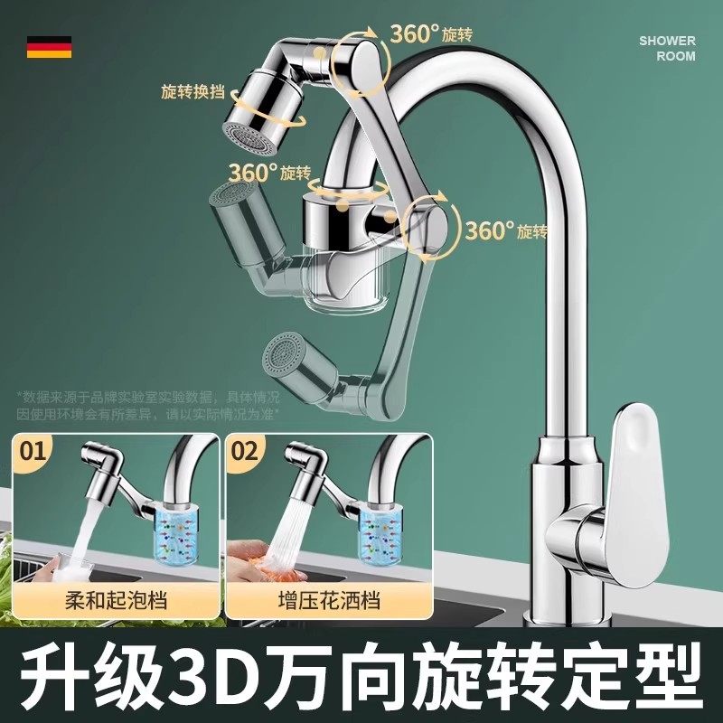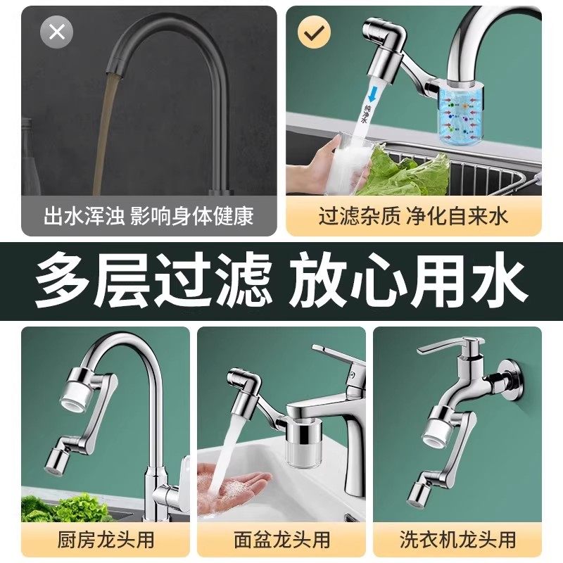 优爵机械臂万向水龙头过滤器嘴自来水家用面盆万能通用净水延伸器