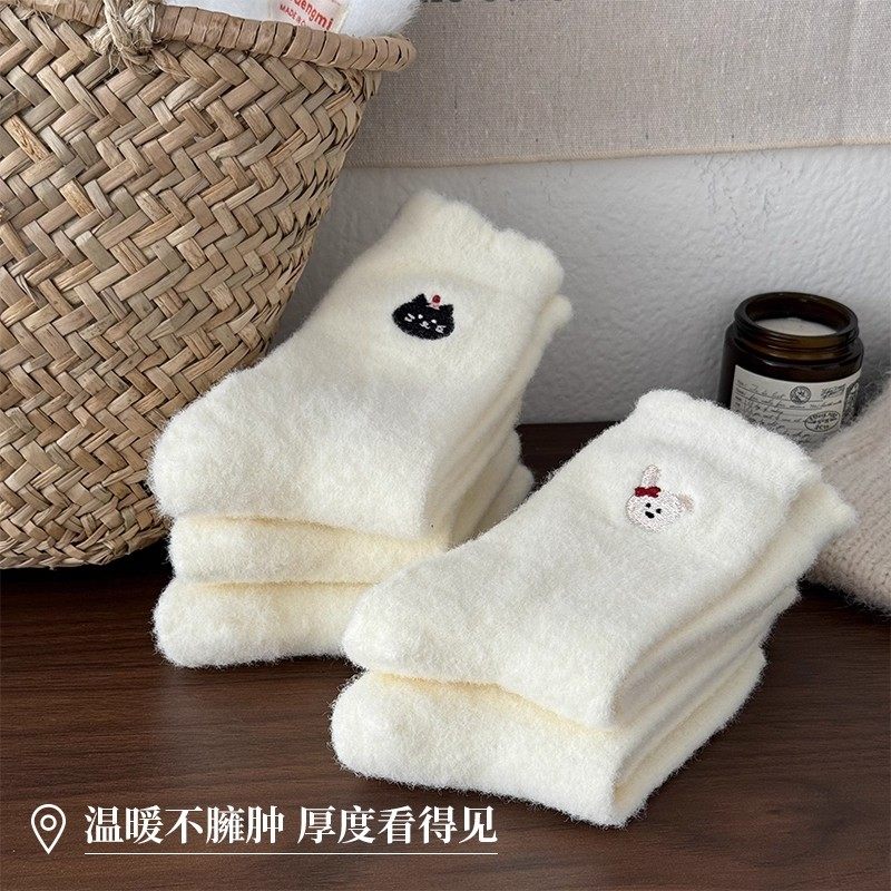 毛绒袜子女士2025新款爆款秋冬季中筒袜加绒加厚保暖月子袜澳绒