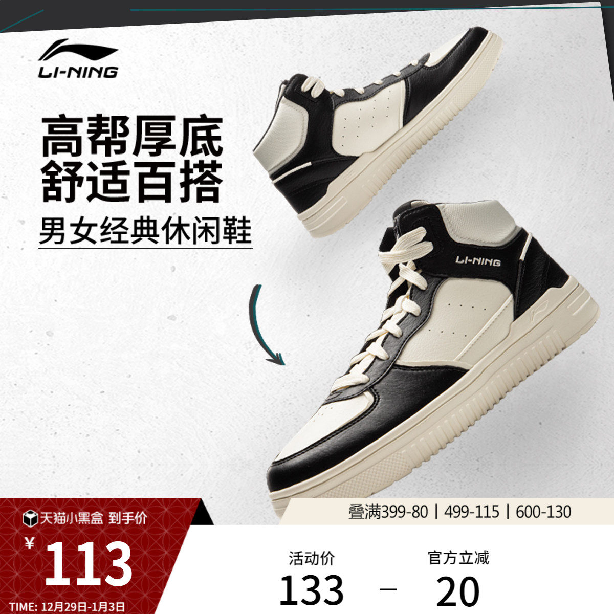 李宁青云Hi丨休闲鞋男鞋冬季厚底增高板鞋黑白复古高帮运动鞋男款