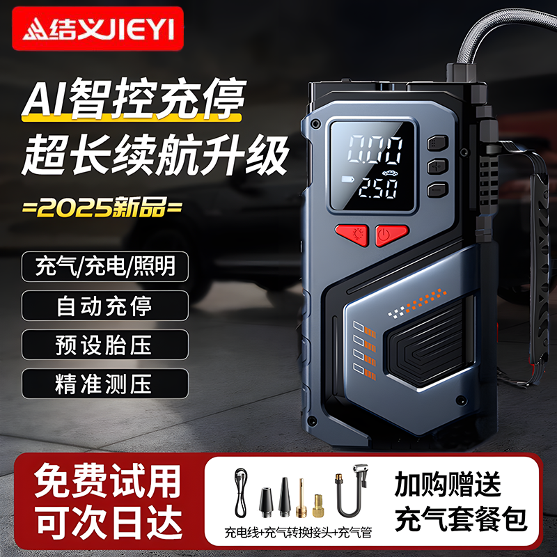 埠威BUWEI汽车应急启动电源车载充气泵一体机便携车用强力搭电宝