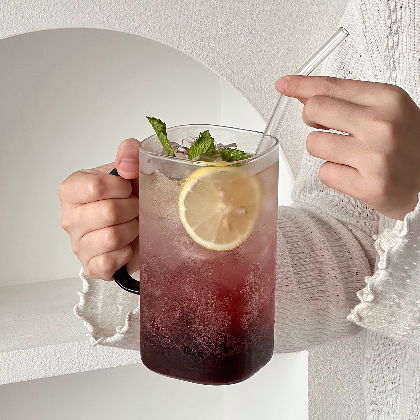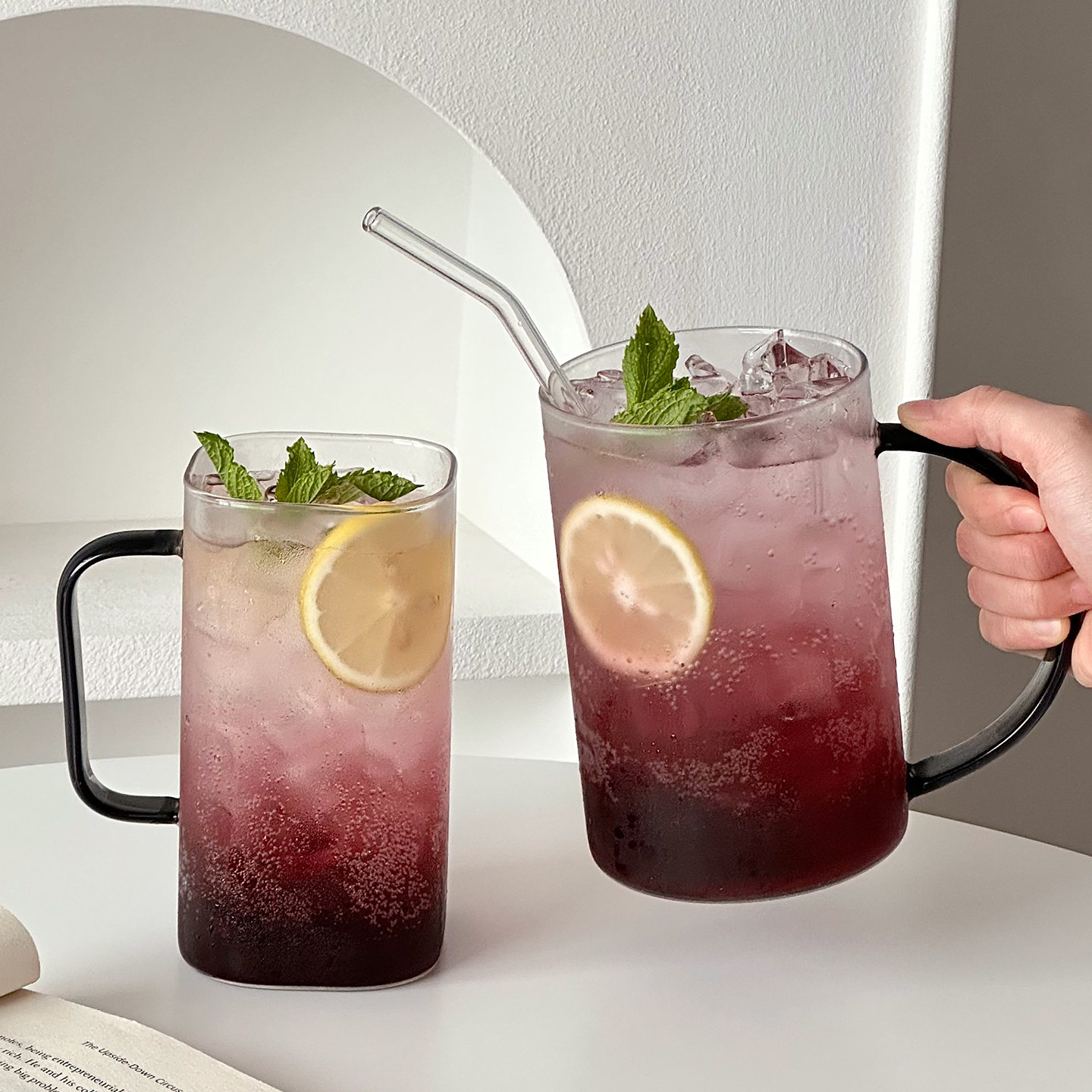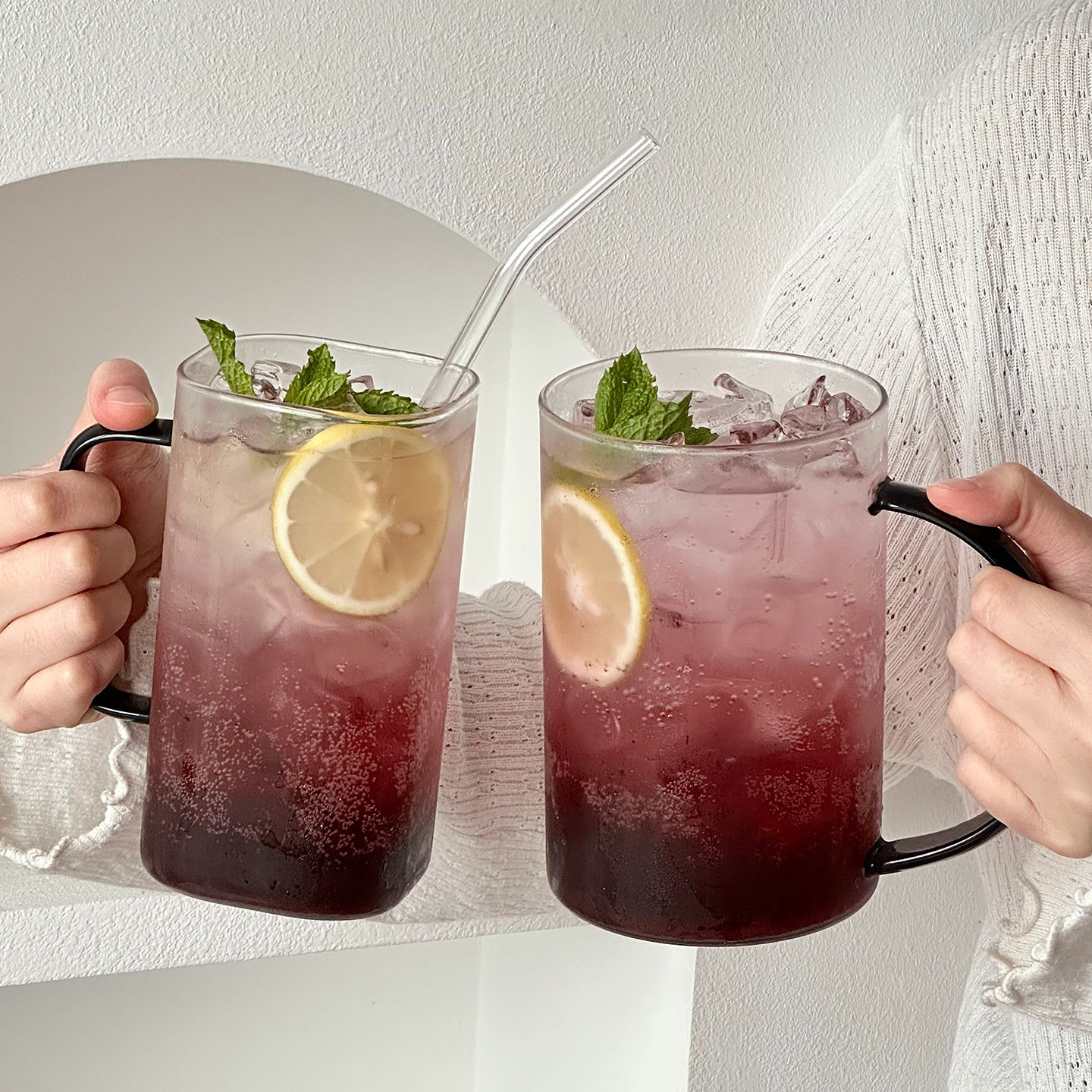 ins玻璃杯带把手马克杯高颜值喝水杯子家用早餐牛奶杯冷萃咖啡杯