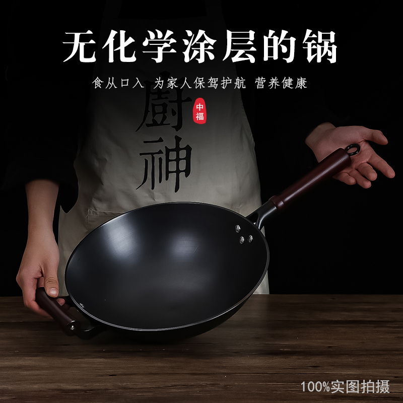 【经典款】中康精铁炒锅铁锅氮化防锈无涂层炒锅电磁炉燃气灶通用
