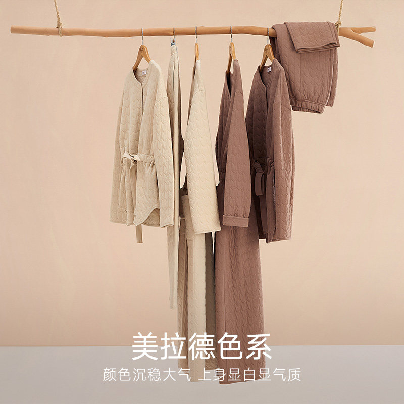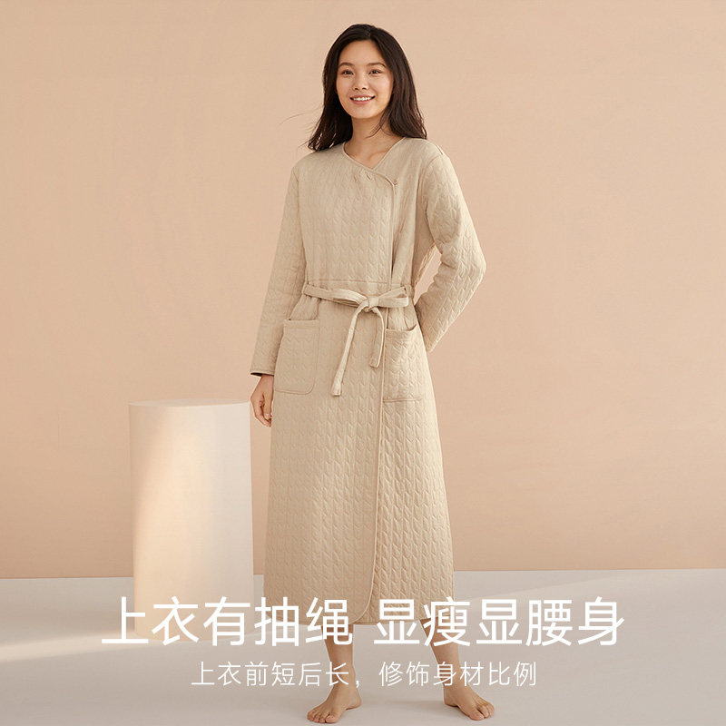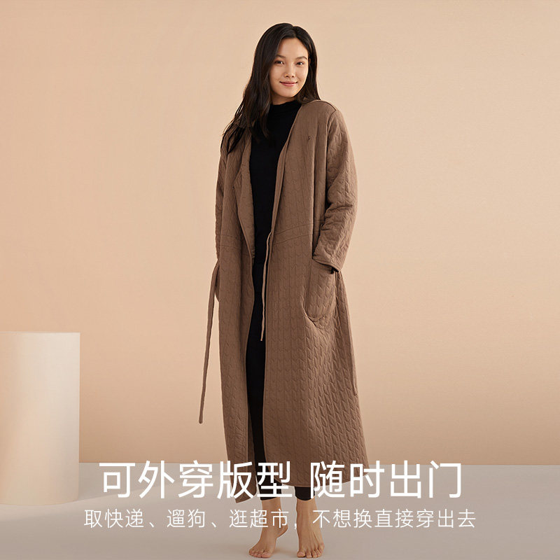 曼妮芬棉质生活纯棉睡衣女冬季加厚居家可外穿防静电浴袍全棉睡袍
