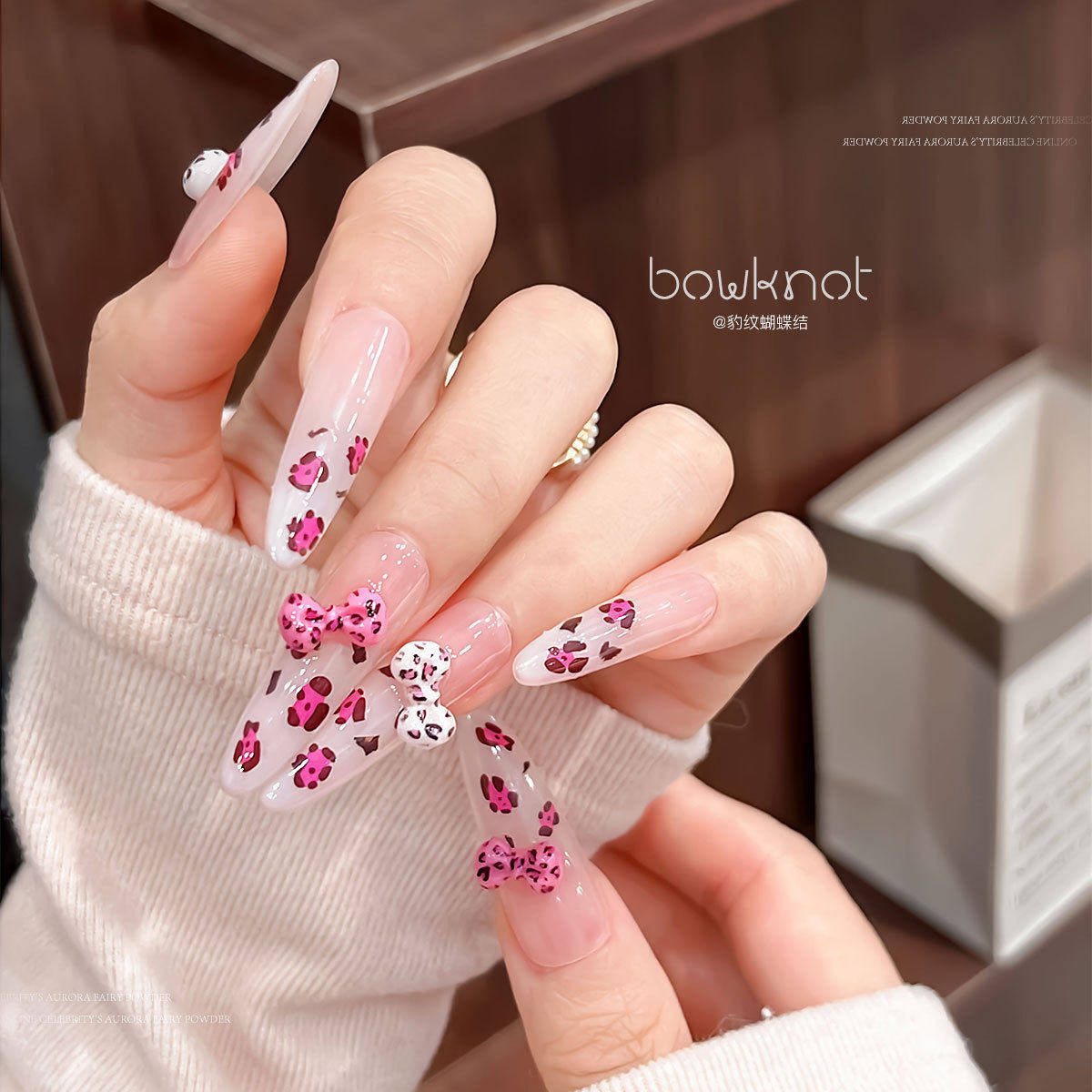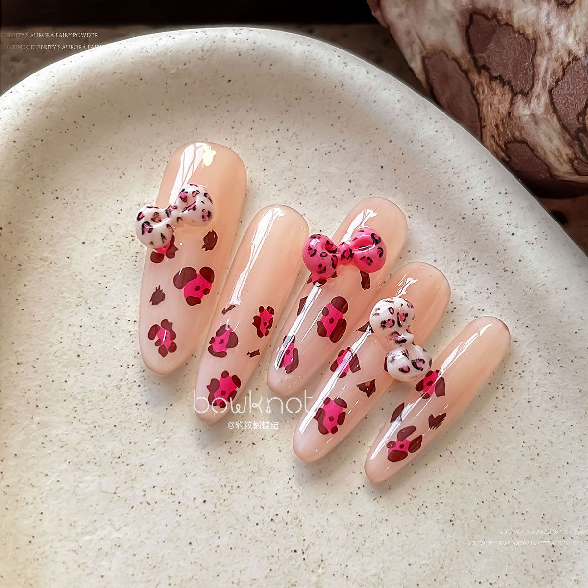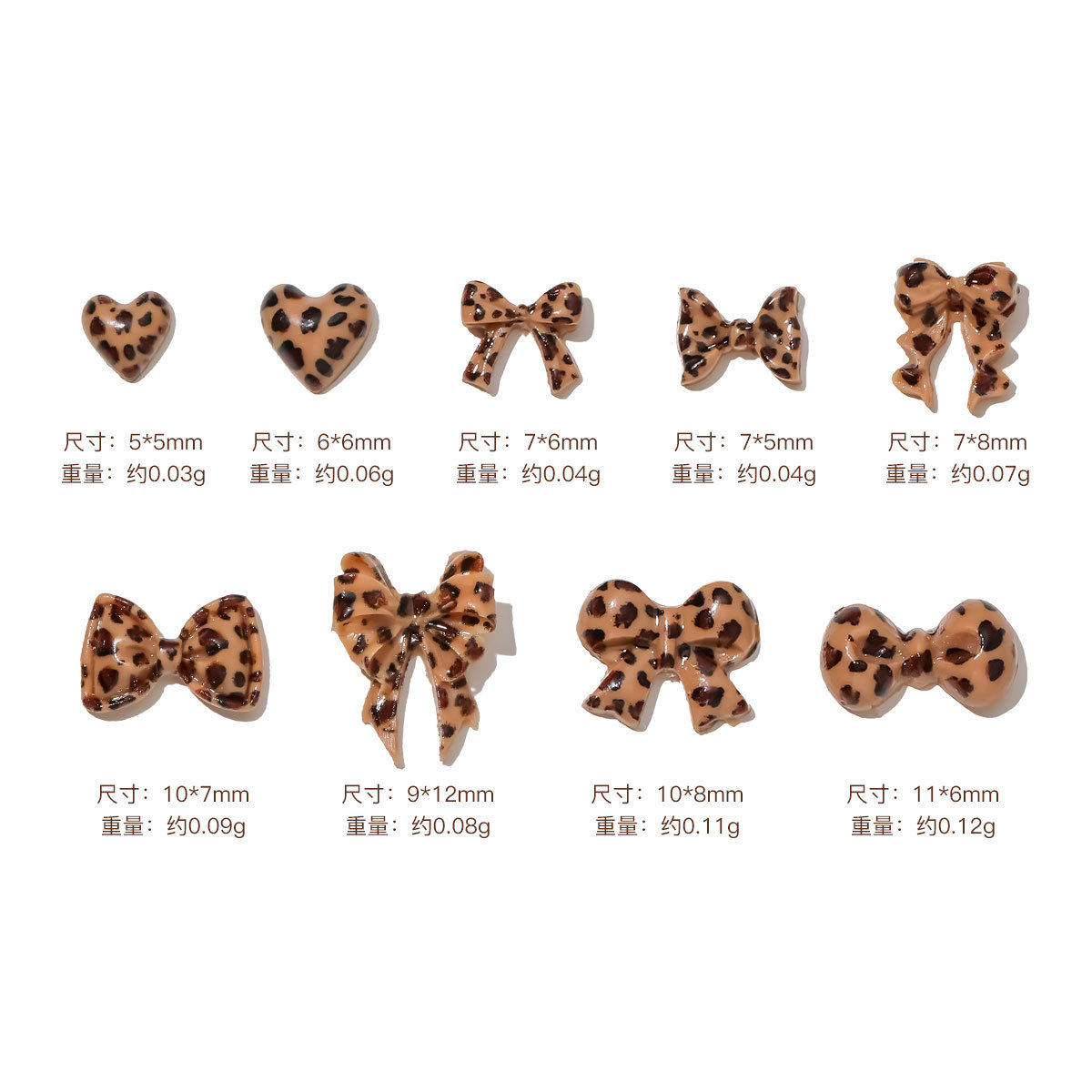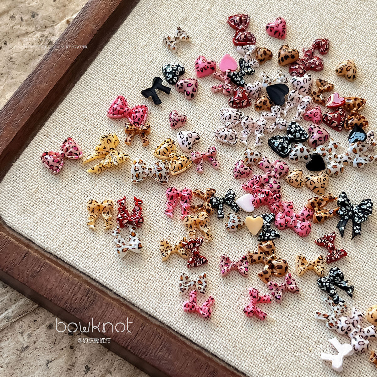 网红豹纹蝴蝶结美甲饰品可爱卡通混装领结爱心树脂指甲钻配饰