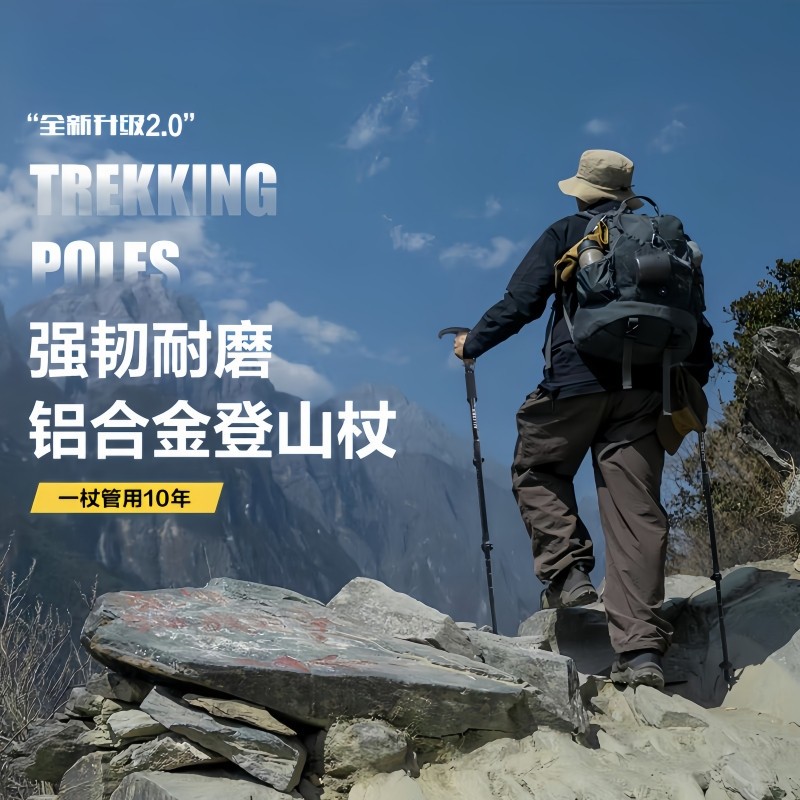 登山杖户外超轻伸缩杖男女爬山徒步装备防滑多功能老人拐杖