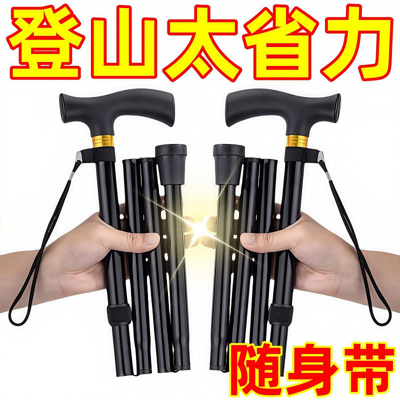多功能登山杖超轻伸缩折叠徒步爬山拐杖铝合金老年人防滑拐棍手仗