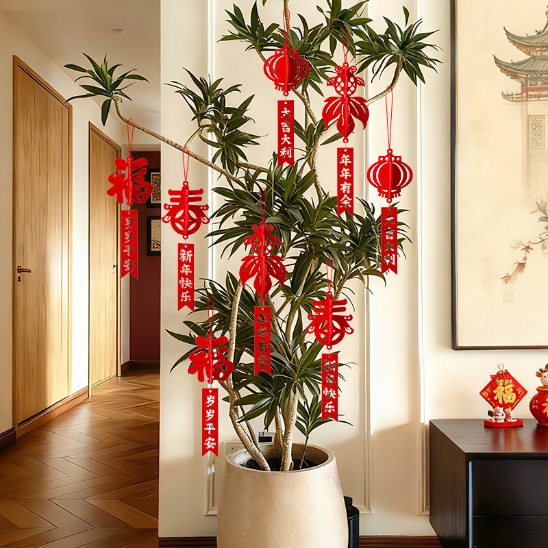 2026马年树上绿植挂件新年小灯笼发财树挂饰春节氛围布置过年装饰