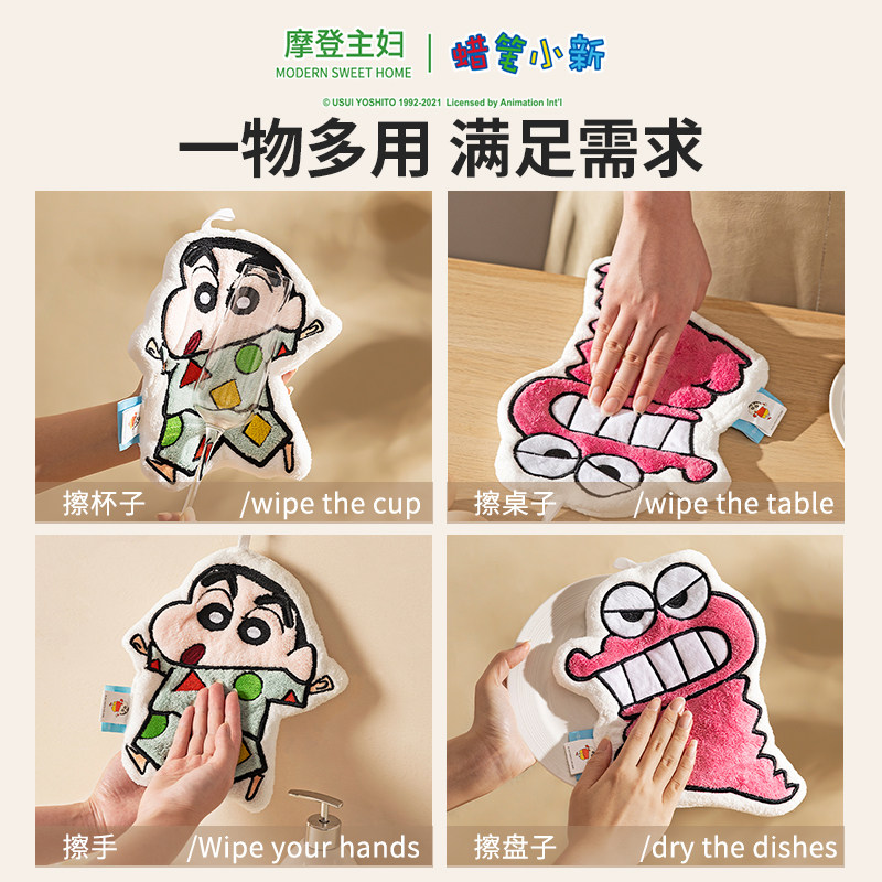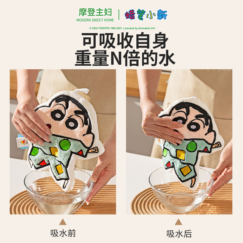 摩登主妇蜡笔小新擦手巾厨房挂式可爱毛巾强吸水高颜值儿童擦手帕