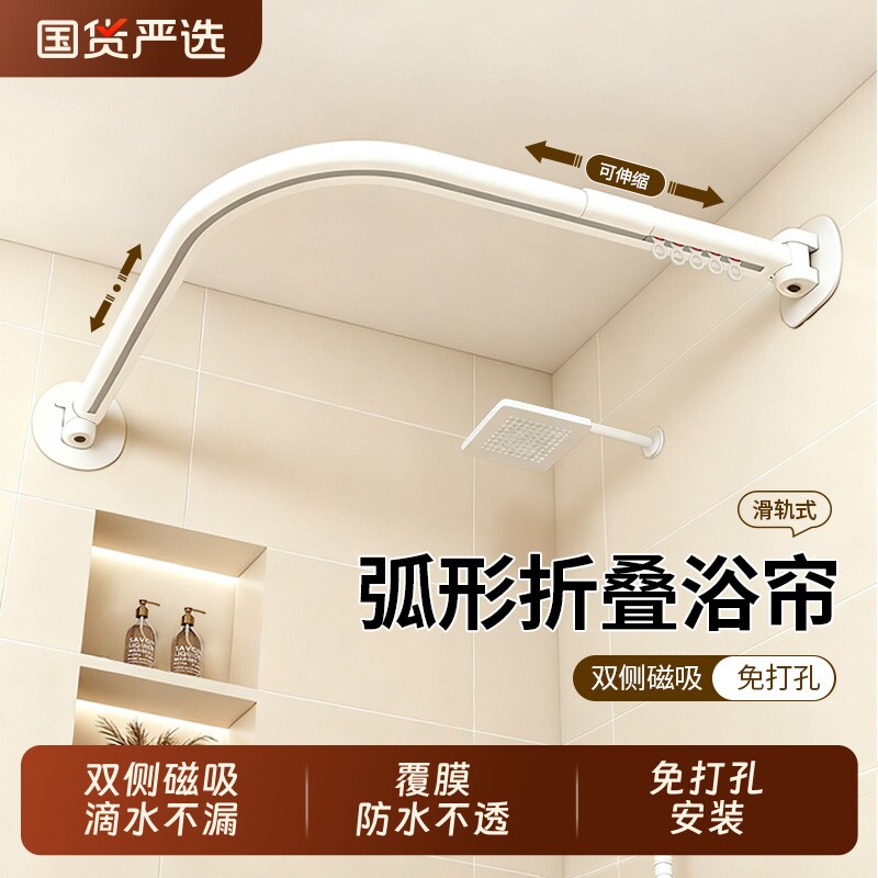 弧形防水浴帘滑轨浴帘杆加厚卫生间洗澡淋浴高档浴室折叠帘隔断帘