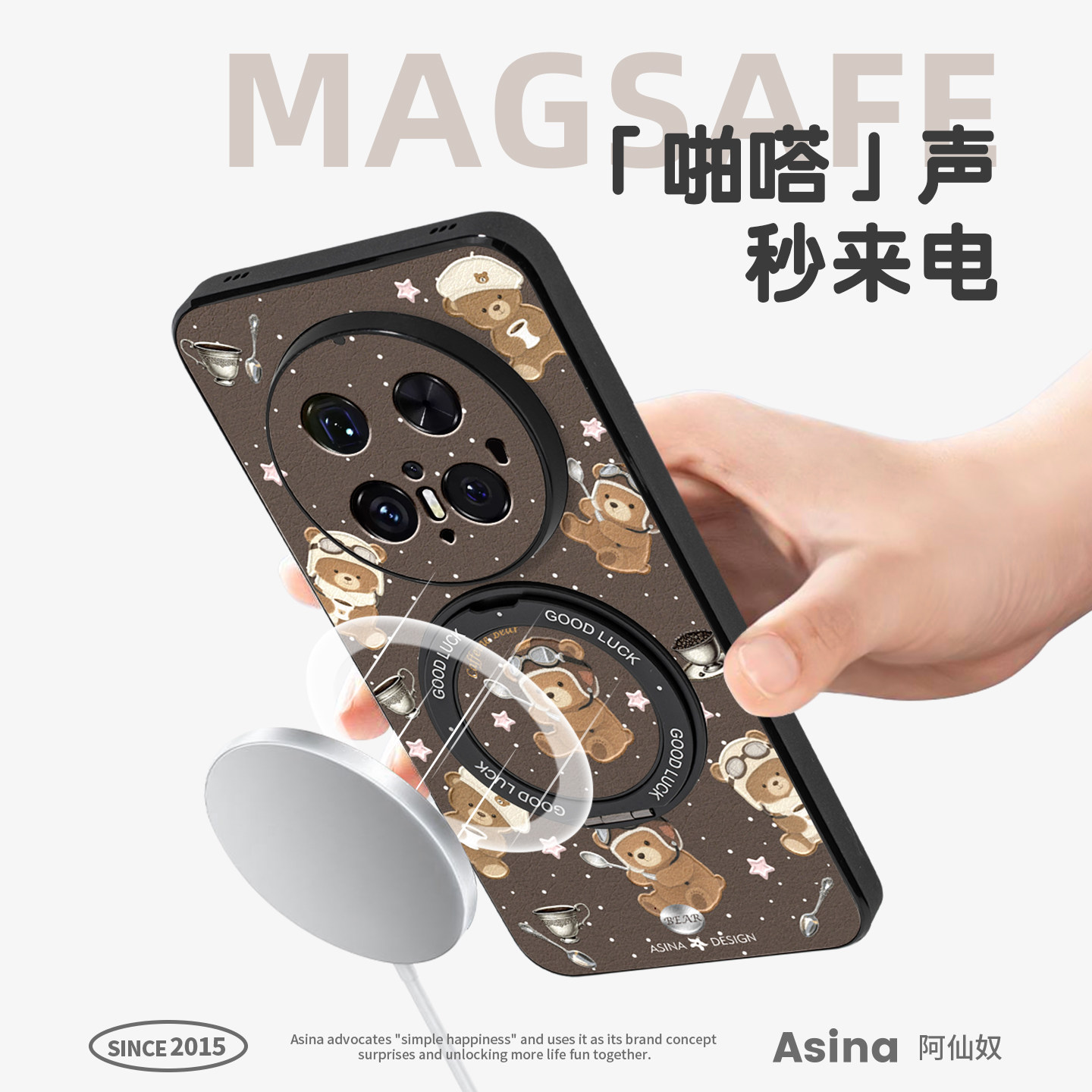 咖啡熊仔适用华为mate80pro手机新款壳mate70磁吸全包m60pro+秋冬高级感mt70pro防摔带支架保护套Pro+女Ho3