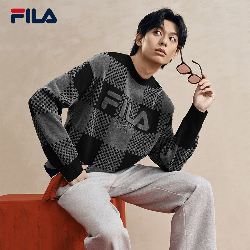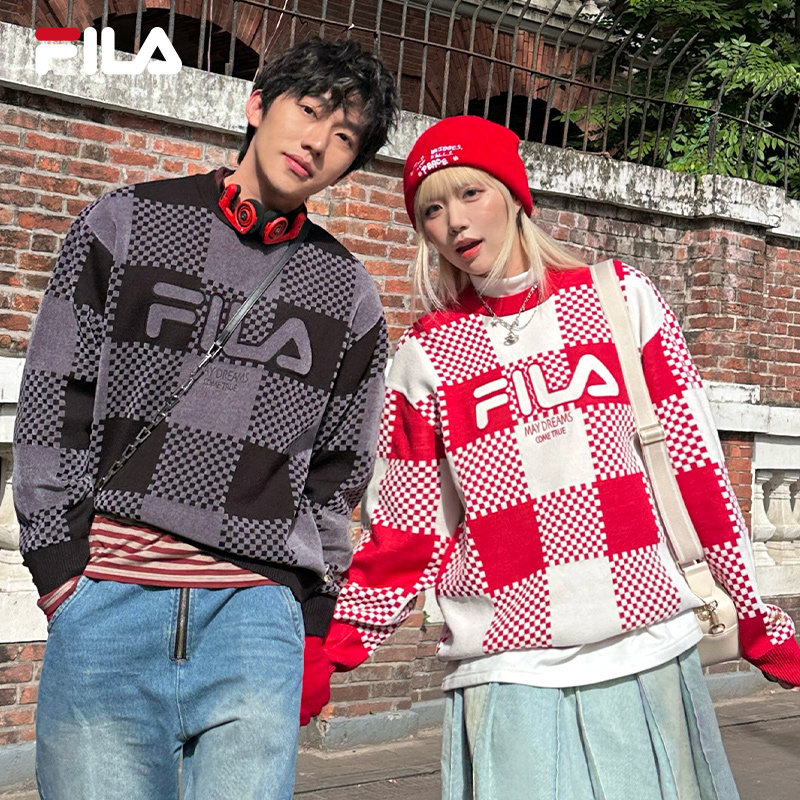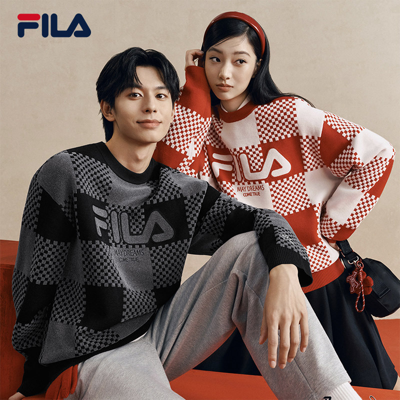 马上起飞FILA斐乐官方情侣长袖毛衣女编织衫保暖红色新年款上衣男
