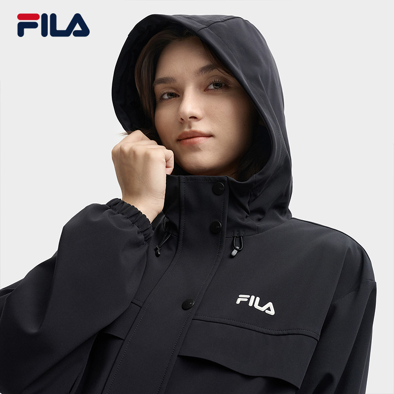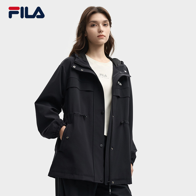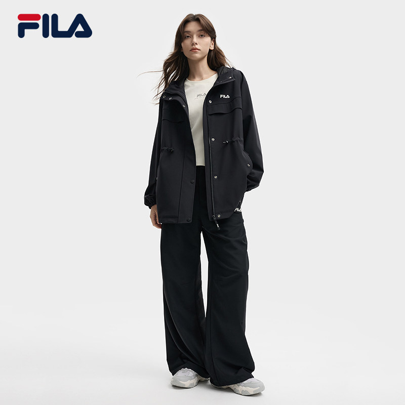 FILA 斐乐官方女梭织外套25秋新款时尚休闲收腰宽松连帽风衣上衣