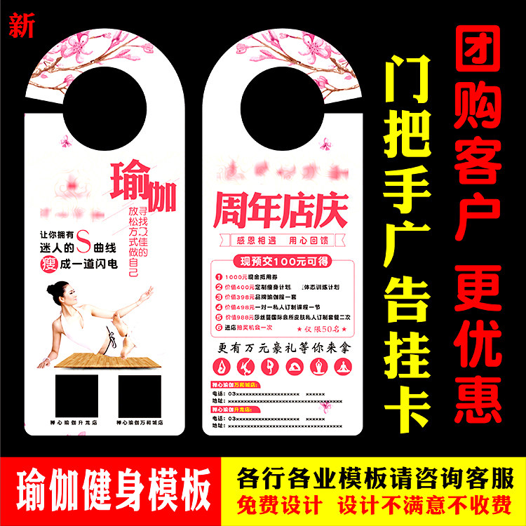 瑜伽健身减肥瘦身美容体验卡挂门锁宣传单门把手广告挂卡定制印刷