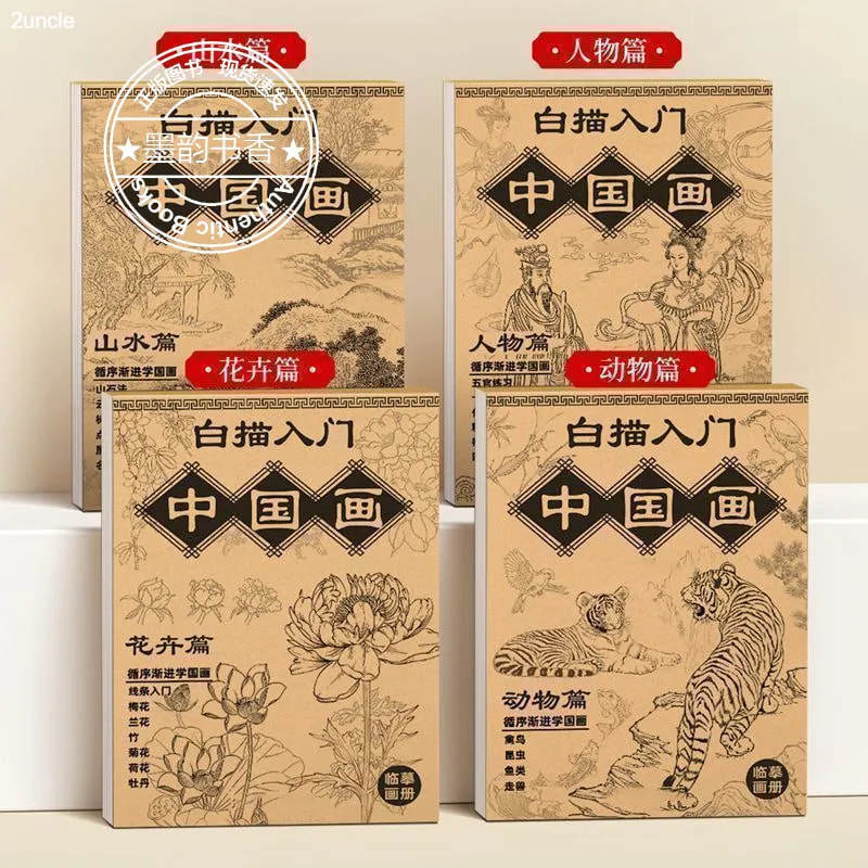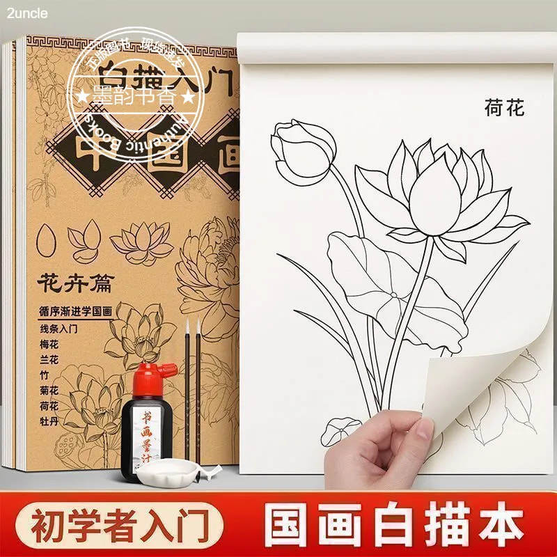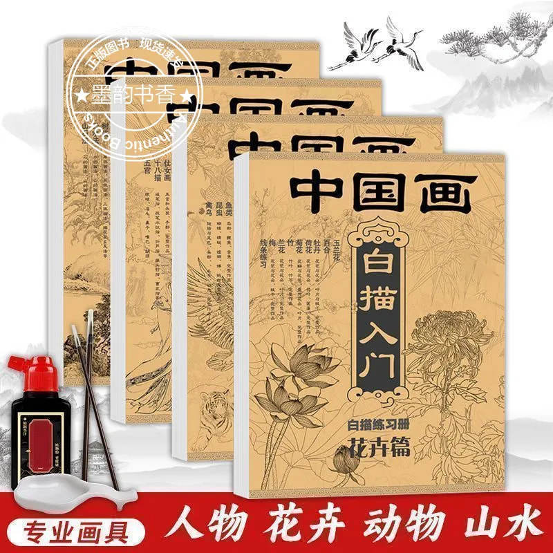 中国画白描入门描摹本国画工笔国风古风花鸟山水人物美术套装图册工具描红书初学者画画临摹画册毛笔绘画练习教材成人零基础适用