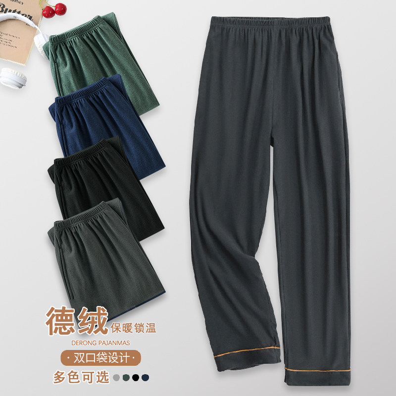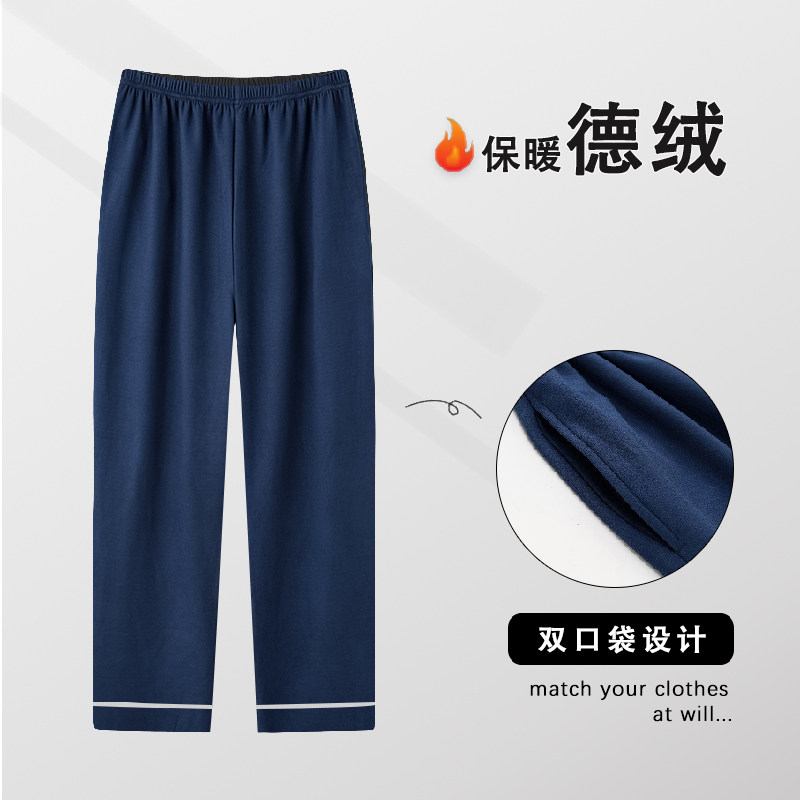 保暖德绒睡裤男加厚休闲直筒长裤秋冬季宽松大码中青年男士家居裤