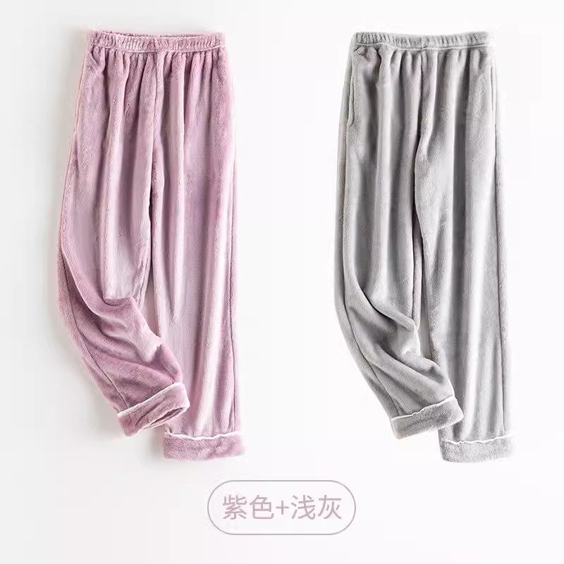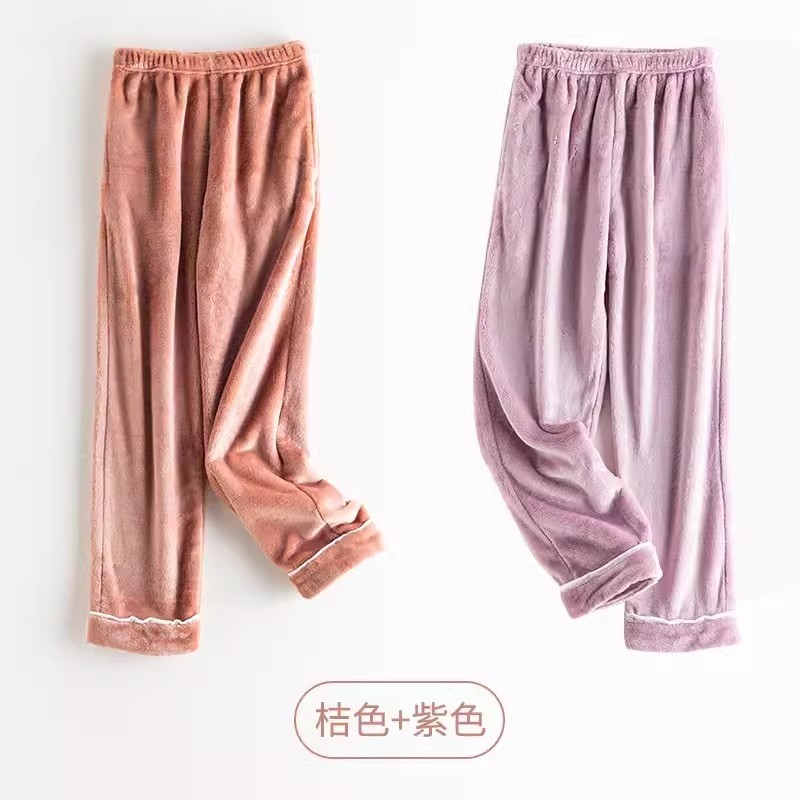 冬季珊瑚绒睡裤女加绒保暖休闲宽松慵懒风法兰绒冬天家居长裤秋冬