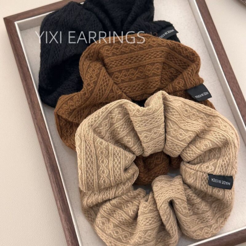 秋冬奶咖色布艺复古花纹大肠发圈女高马尾头花发绳皮套头绳发饰