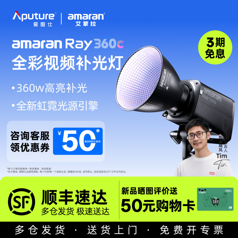 【全新升级】Aputure/爱图仕 艾蒙拉 Ray360c 360w全彩氛围直播补光灯主播专用 300c常亮灯发丝打光灯摄影灯