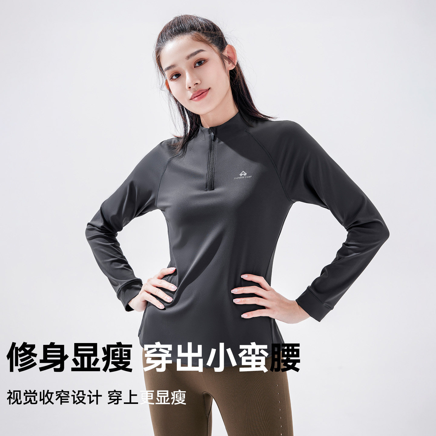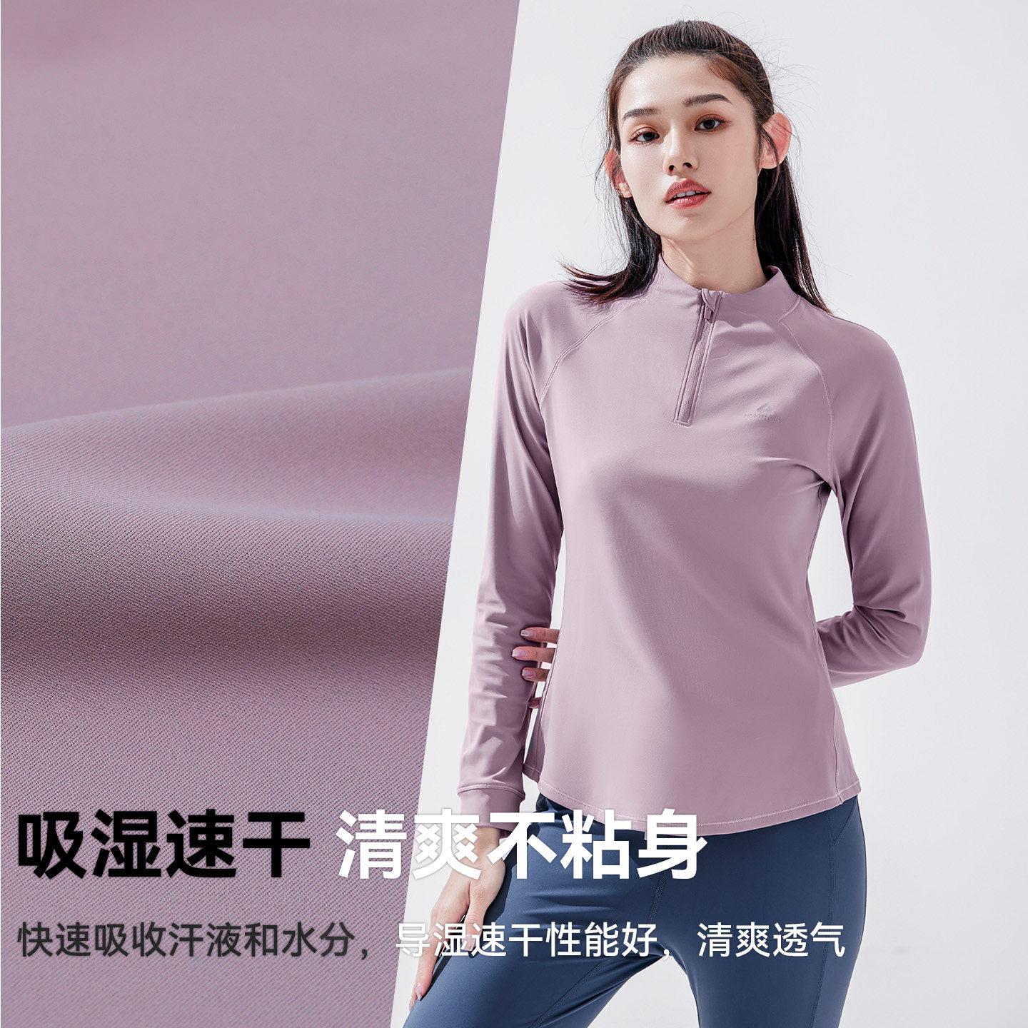 拓路者快干衣女长袖跑步速干运动上衣春秋半开襟贴身层T恤瑜伽服