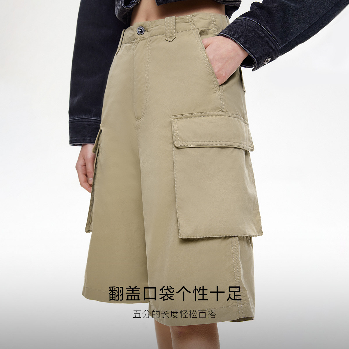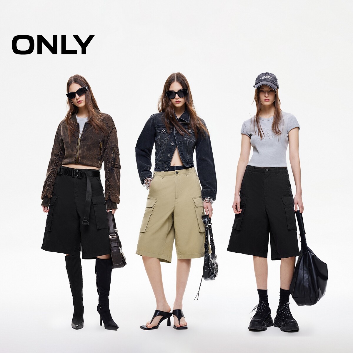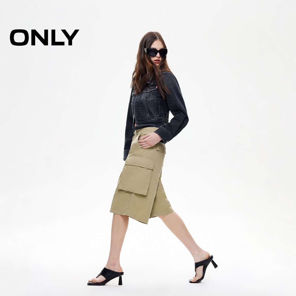 【ONLY奥莱】春夏新款纯棉工装风高腰阔腿宽松五分裤短裤休闲裤女