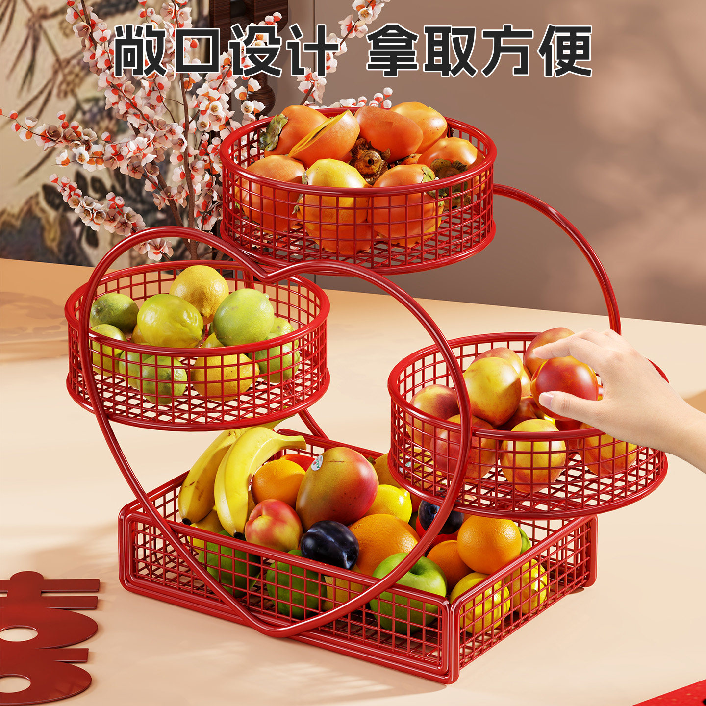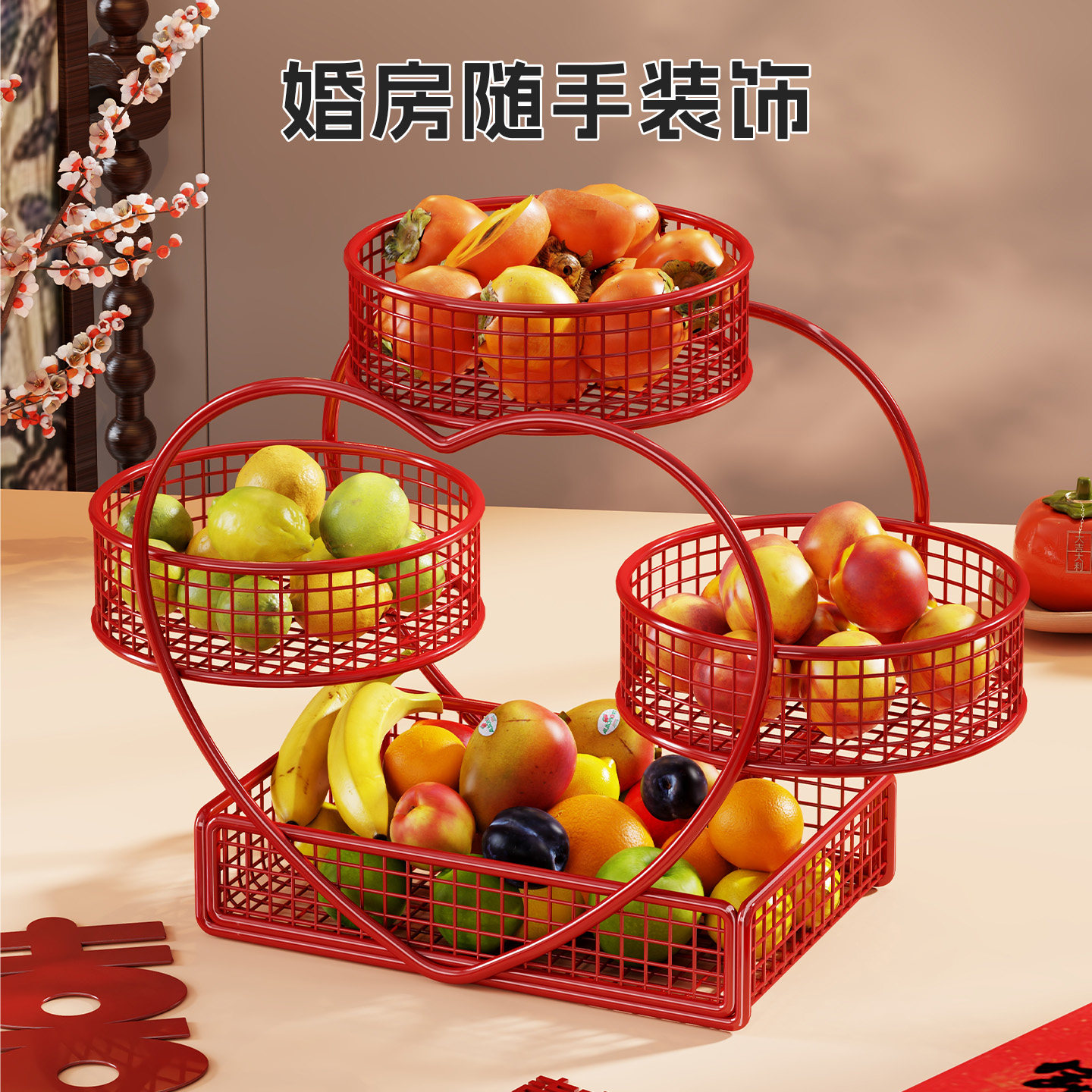 结婚果盘喜糖摆台布置多层客厅茶几干果盒家用分类水果摆放架红色