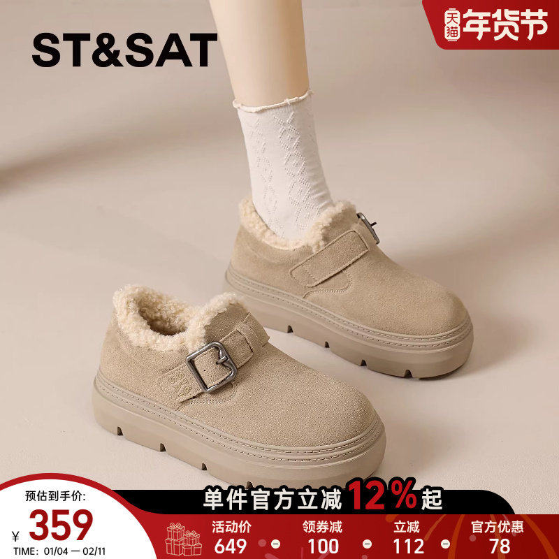 星期六厚底增高雪地靴女款2025新款冬季加绒保暖全包勃肯棉鞋