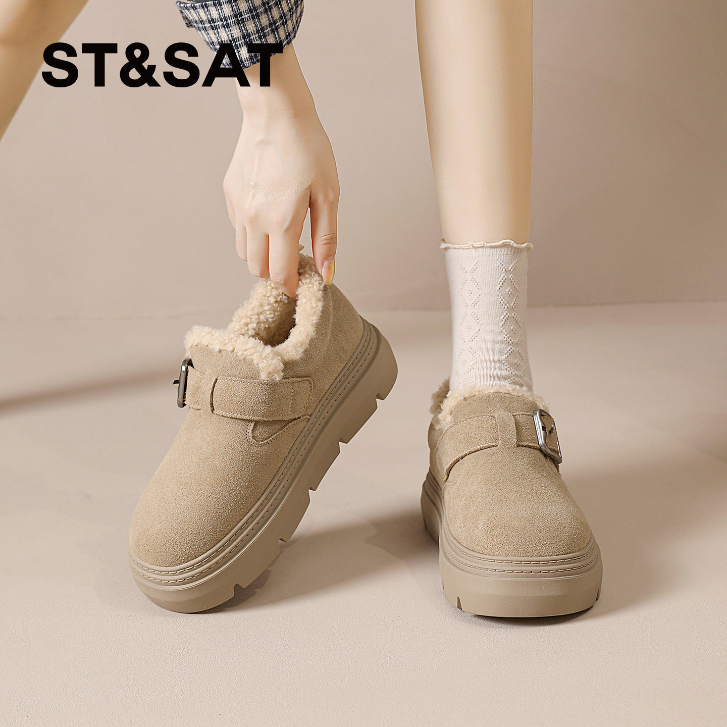 星期六真皮厚底勃肯鞋女2025新款冬季女鞋加厚加绒雪地靴防滑棉鞋