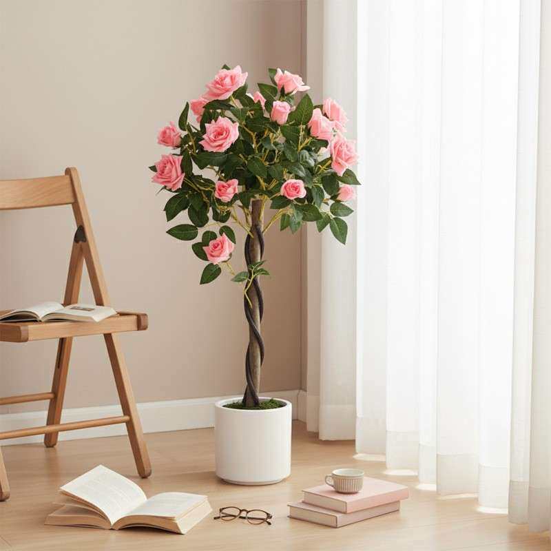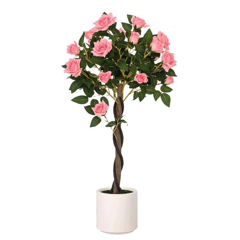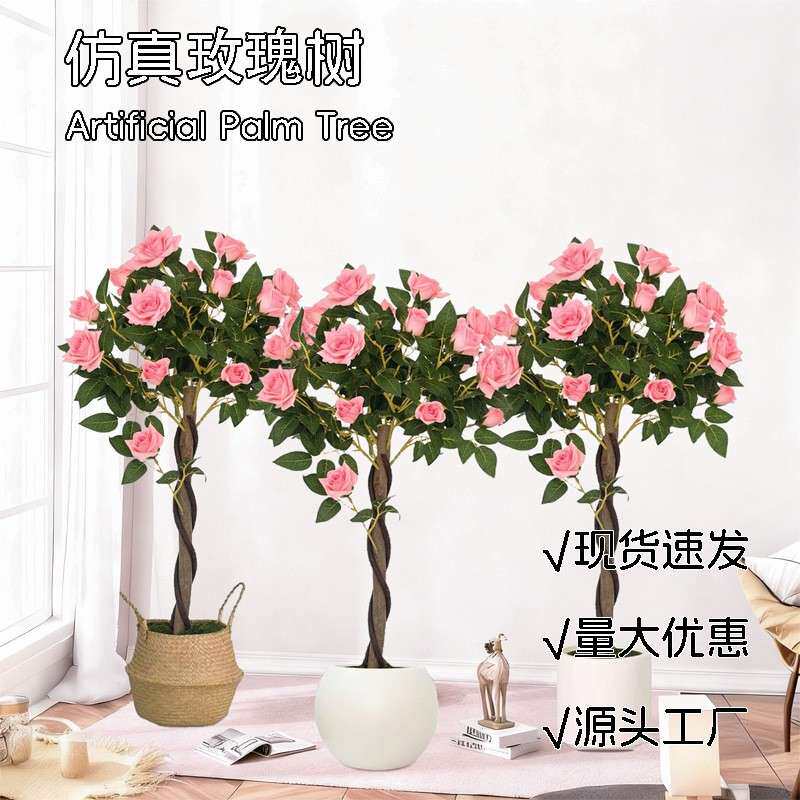 瑰树仿真绿植端轻696奢室内玫客厅装饰品仿落地摆高件生植物假树假花