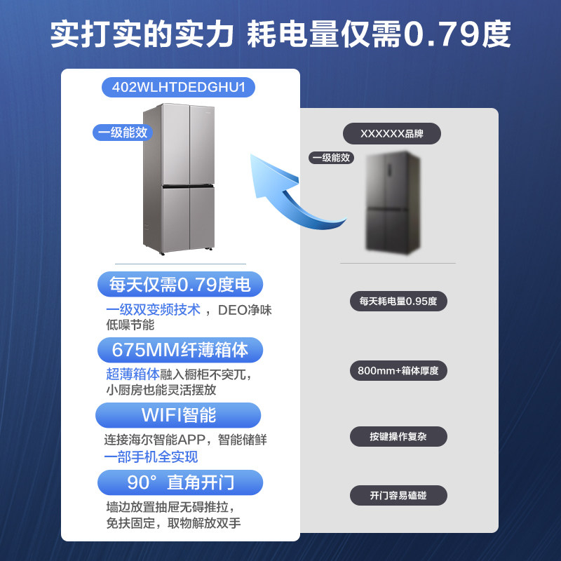 【新品】海尔冰箱家用402升十字对开门一级能效无霜双变频超薄