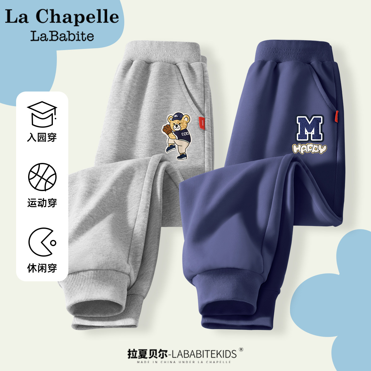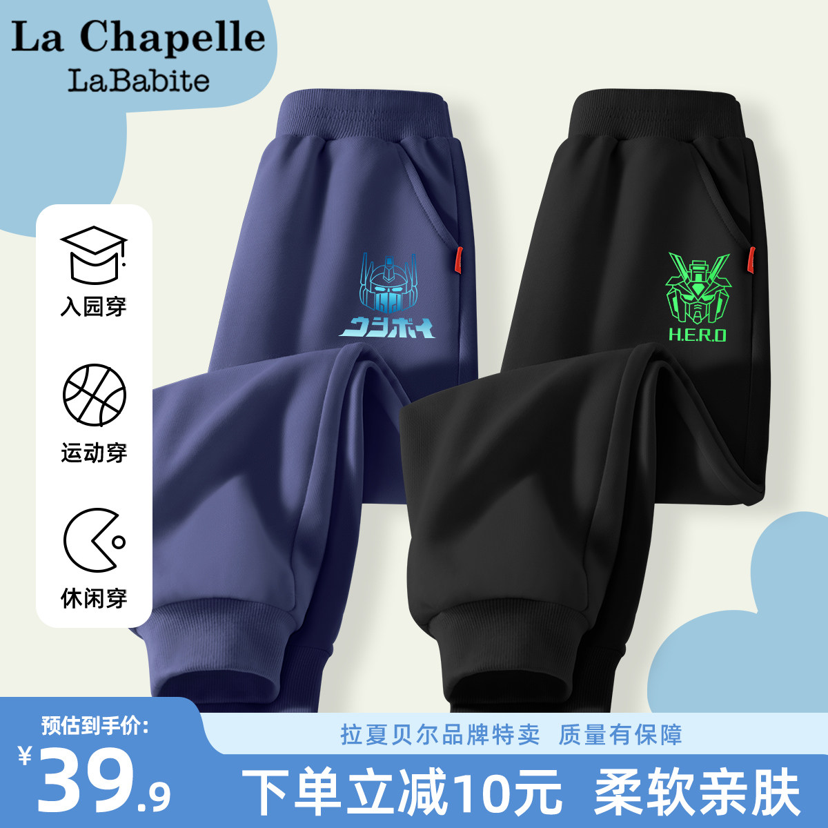 拉夏贝尔男童裤子春秋2025新款炸街童装男孩黑色运动长裤儿童秋装