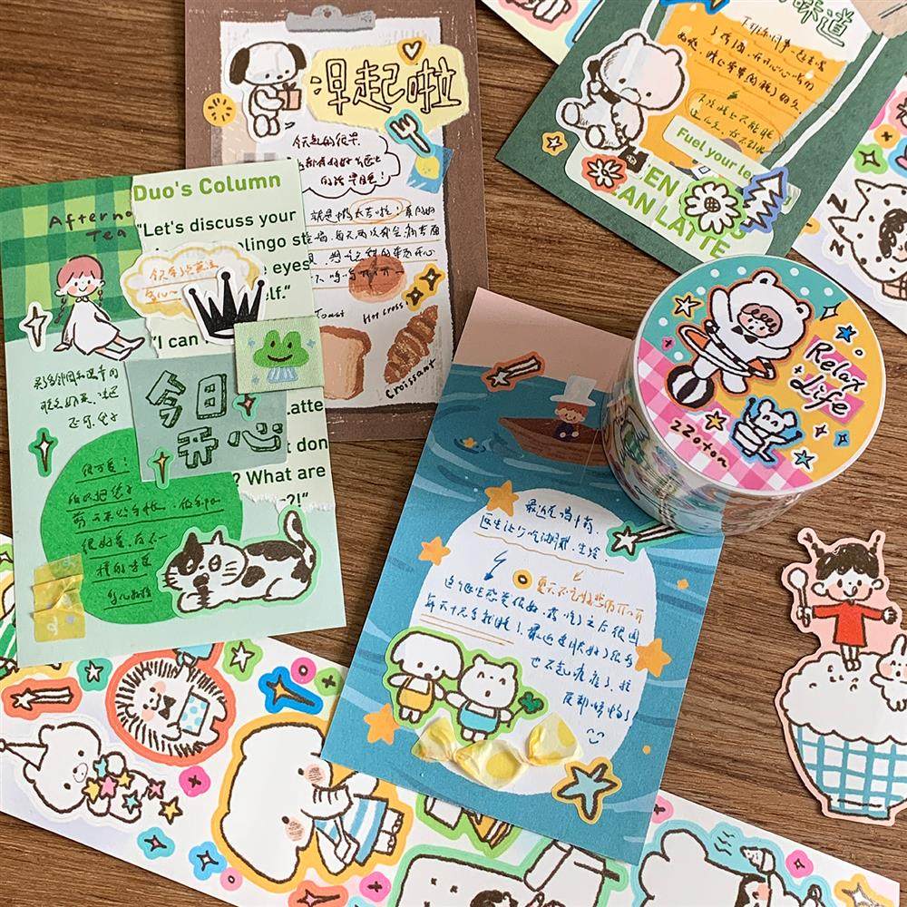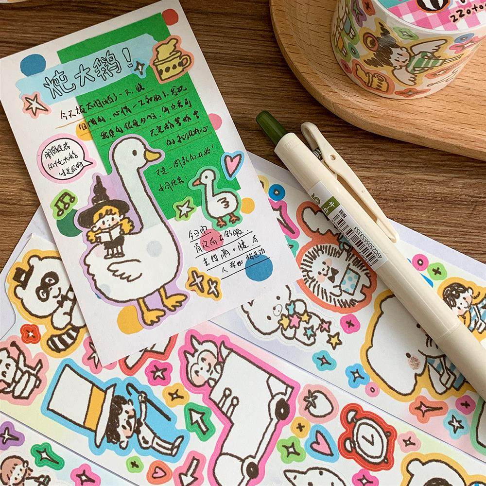 卓大王【潦草风大涂鸦胶带】铅笔小人黑白图案可书写抽象素材装饰