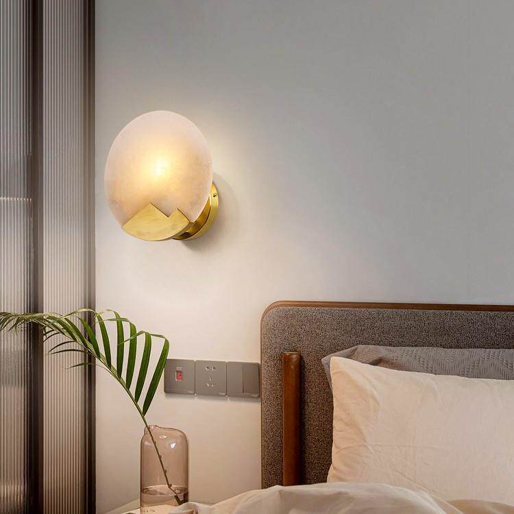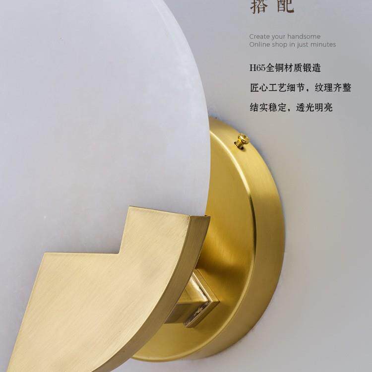 新中式壁灯床头灯卧室现代简约创意北欧房间楼梯过道全铜云石灯具