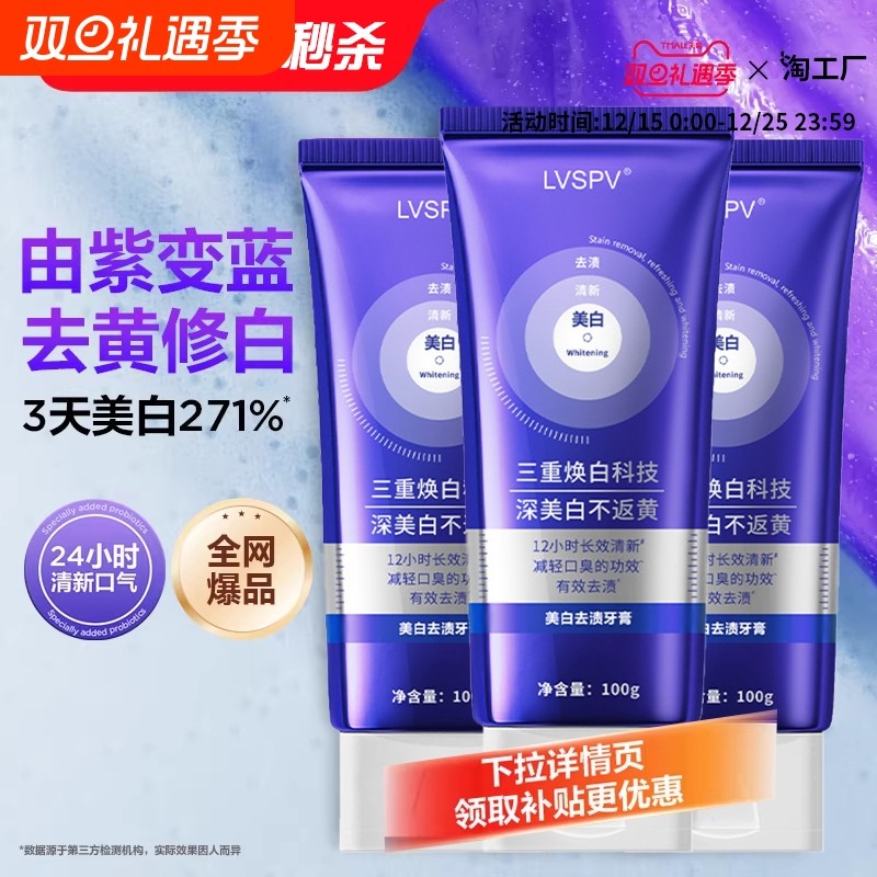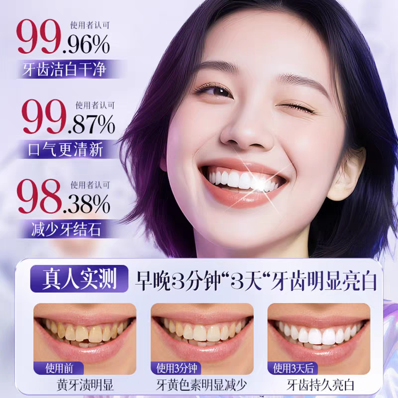 【明星同款】色修牙膏专研清新美白紫光紫色小紫管参去渍亮白半