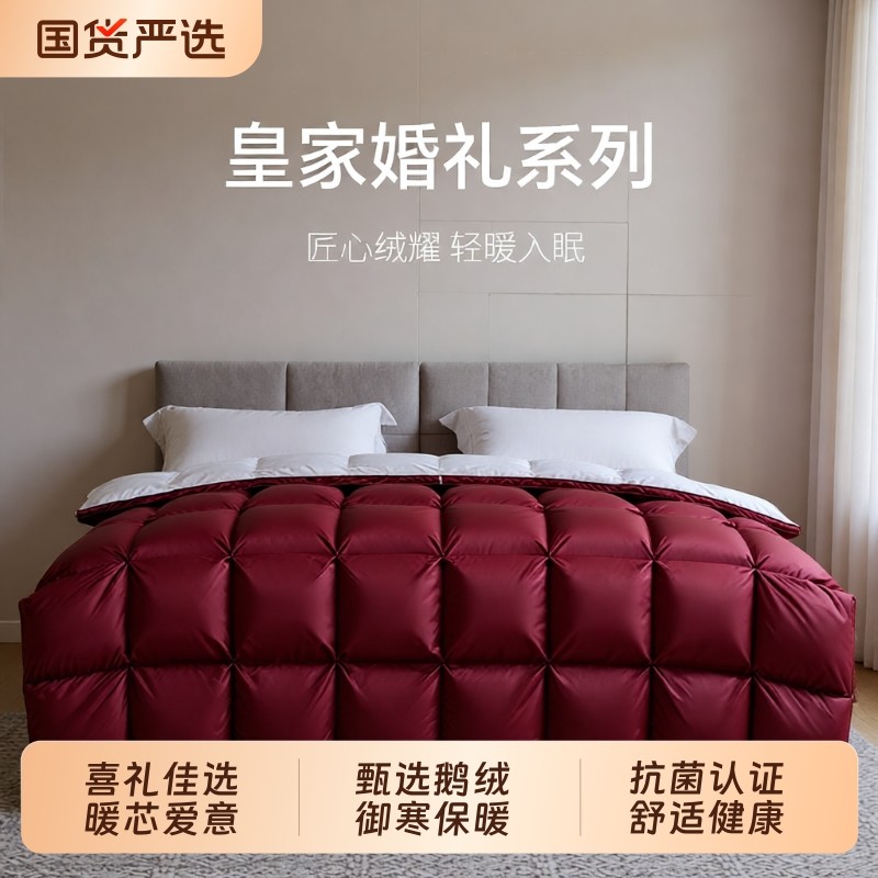 正品羽绒被白鹅绒冬被婚庆结婚红色加厚保暖春秋被子被芯四季被95