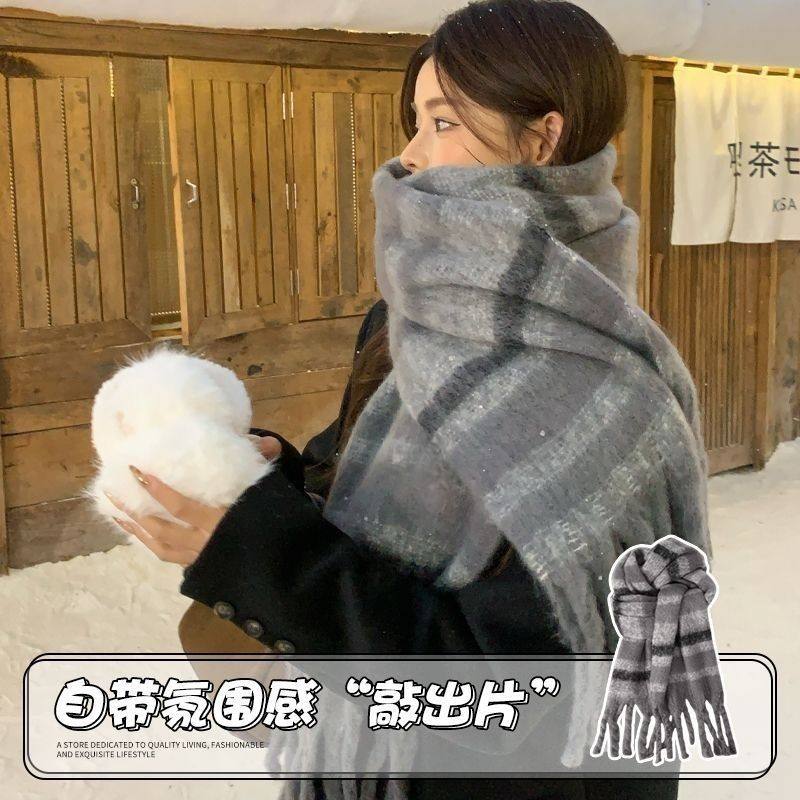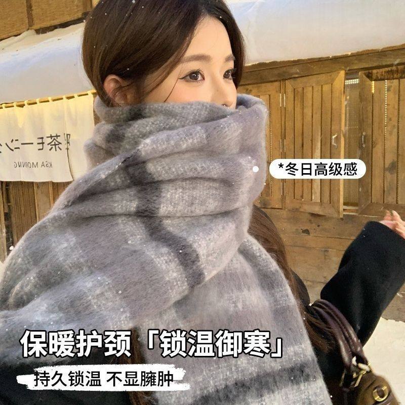 三福格子围巾韩系高级感保暖围脖披肩两用旅游外搭女冬季2025新款