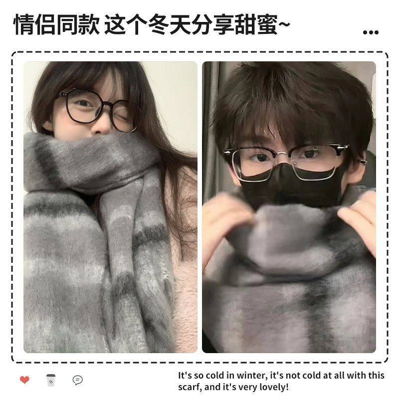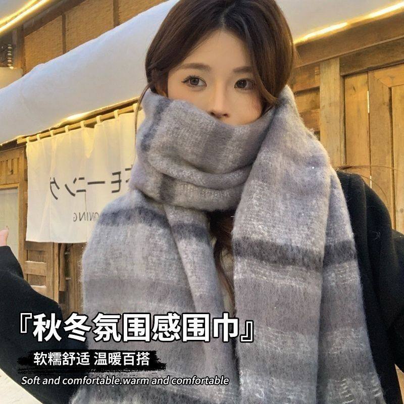 马海毛针织围巾男士秋冬季厚实保暖护肩送礼物灰色韩系软糯高级感