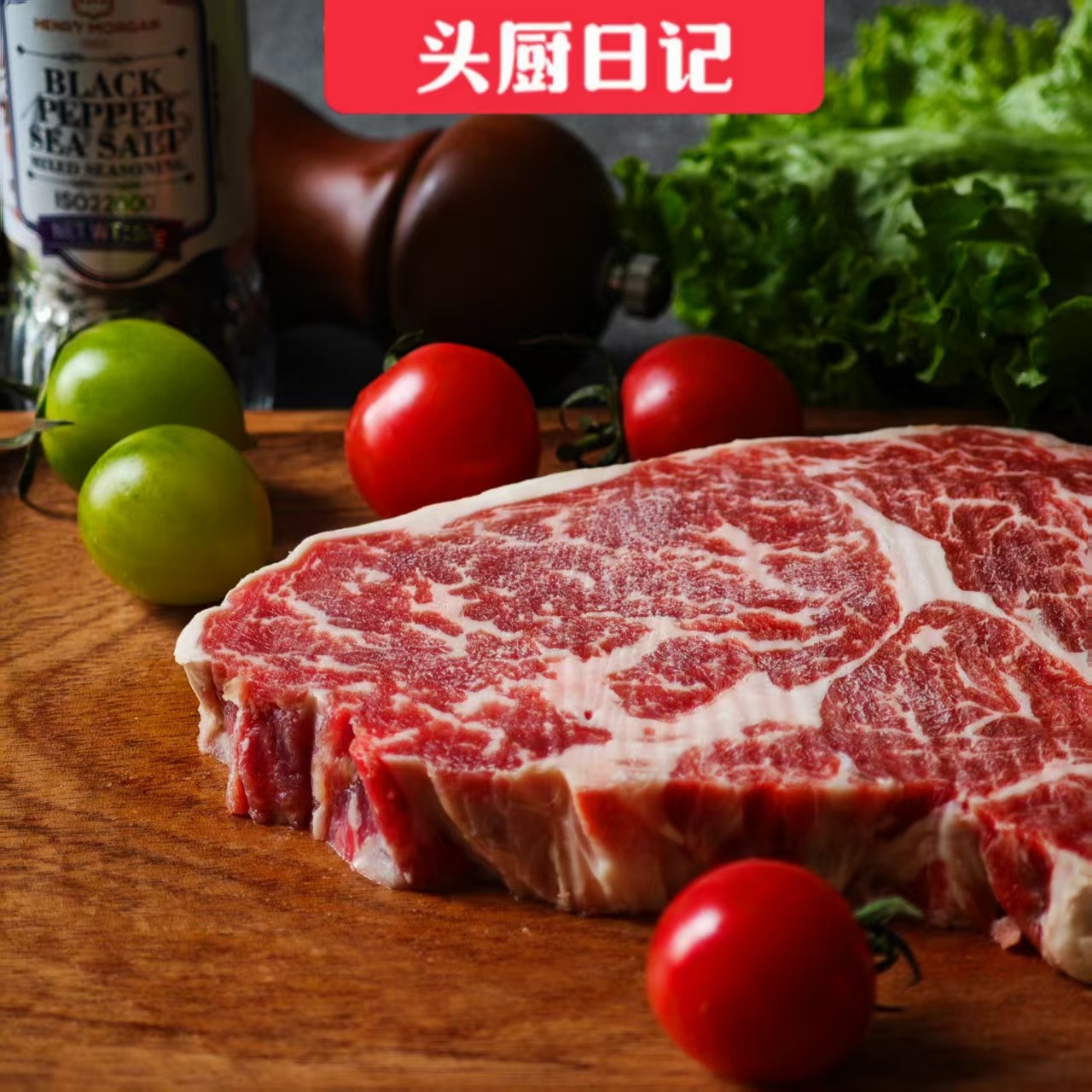 头厨日记澳洲谷饲安格斯M5+肉眼牛排眼肉心500g儿童雪花原切牛排