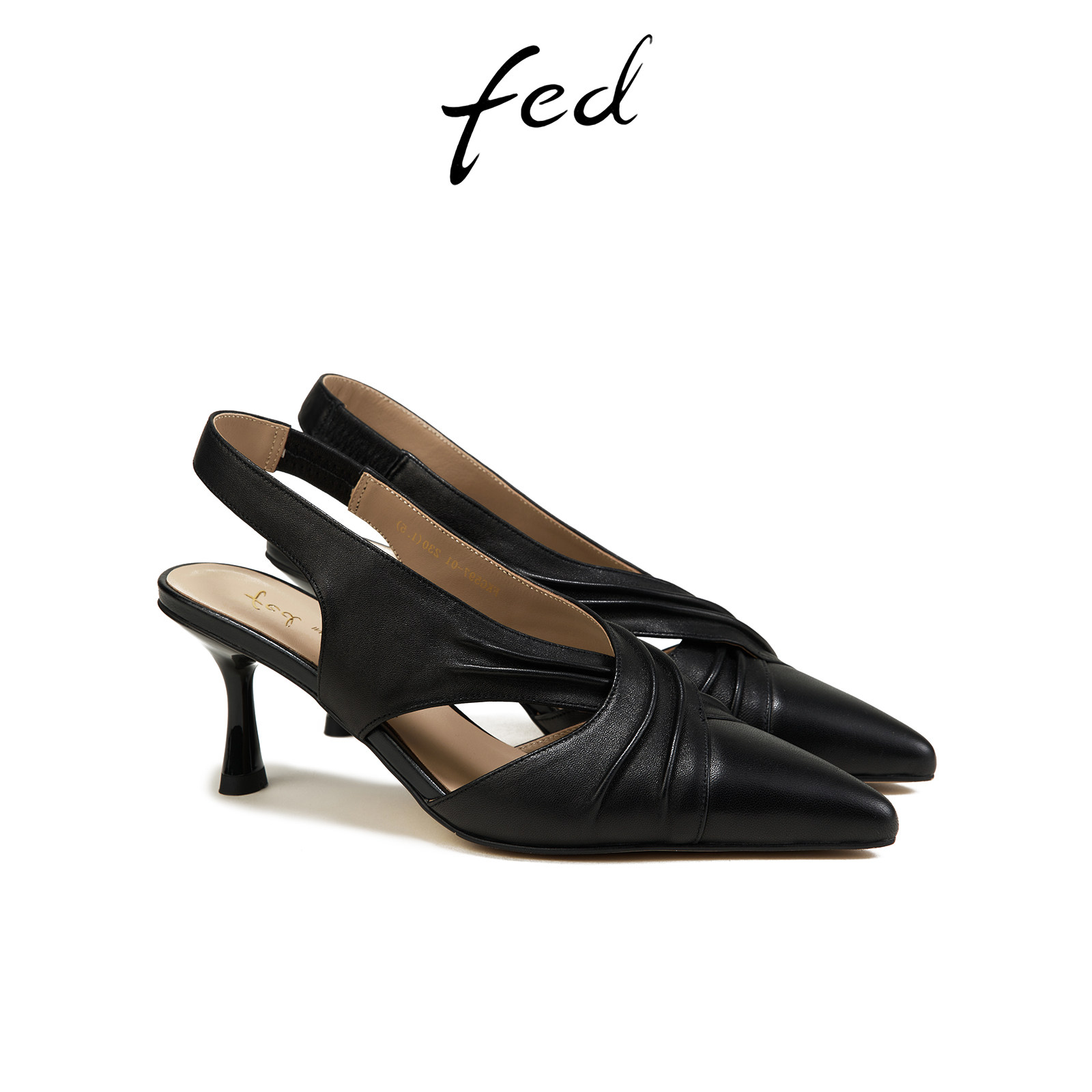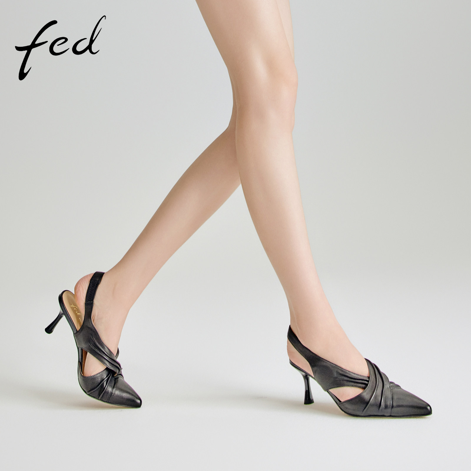 fed尖头高跟凉鞋春季新款女鞋一脚蹬包头凉鞋后空单鞋S0218-YA597