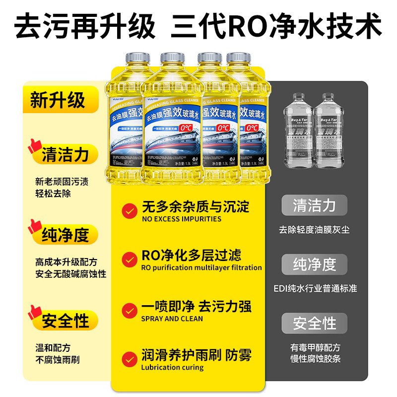 去油膜虫胶玻璃水汽车夏季防雨强力去污清洁养护冬季防冻四季通用