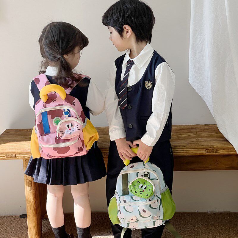 幼儿园轻便带挂件学生书包潮流拼色小孩背包卡通可爱男女童双肩包