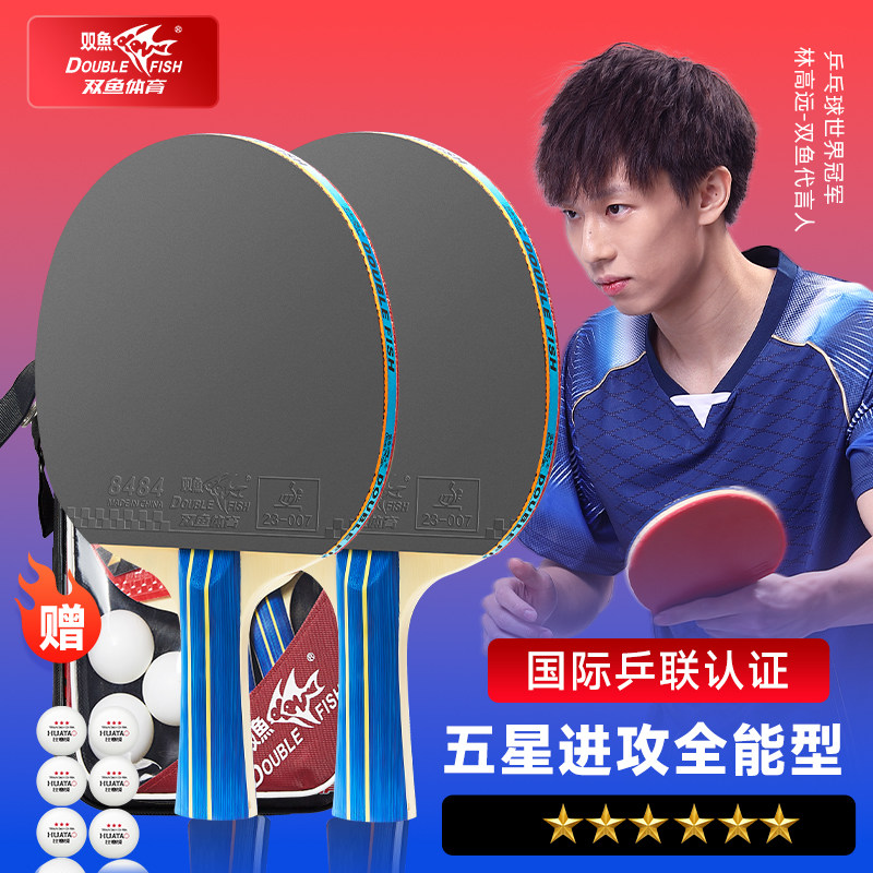 双鱼乒乓球拍双拍实木底板套胶高弹力拍面中小学生成人比赛初学者