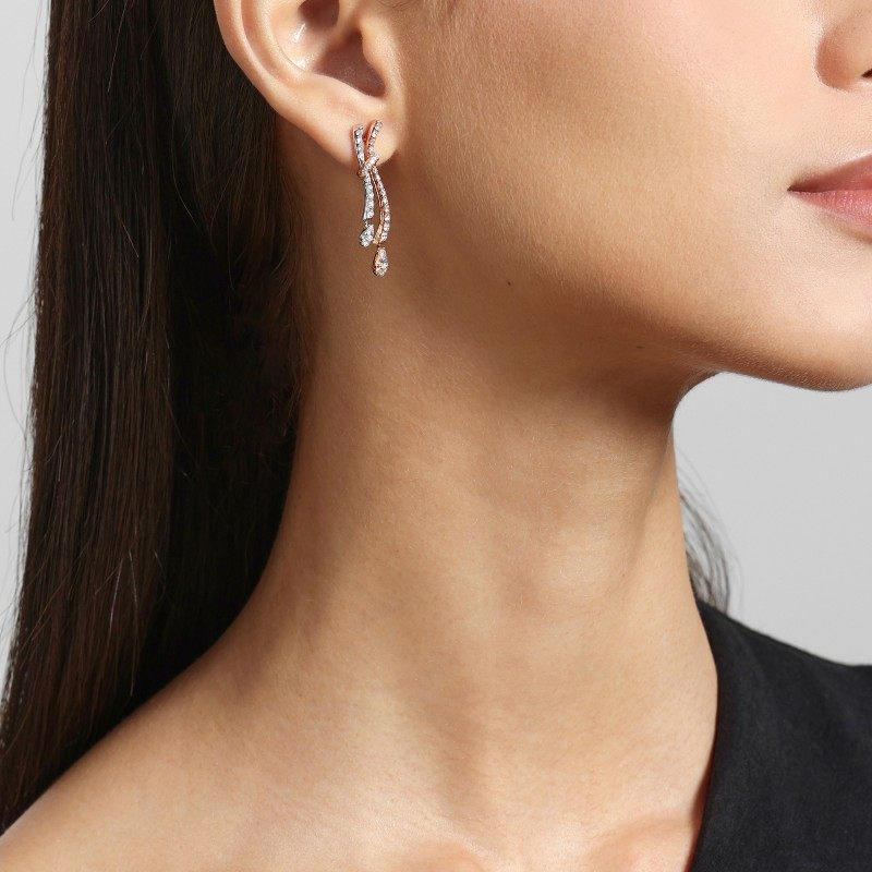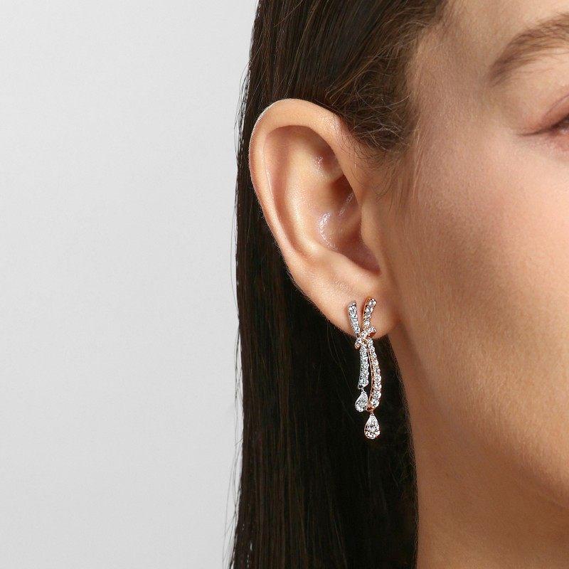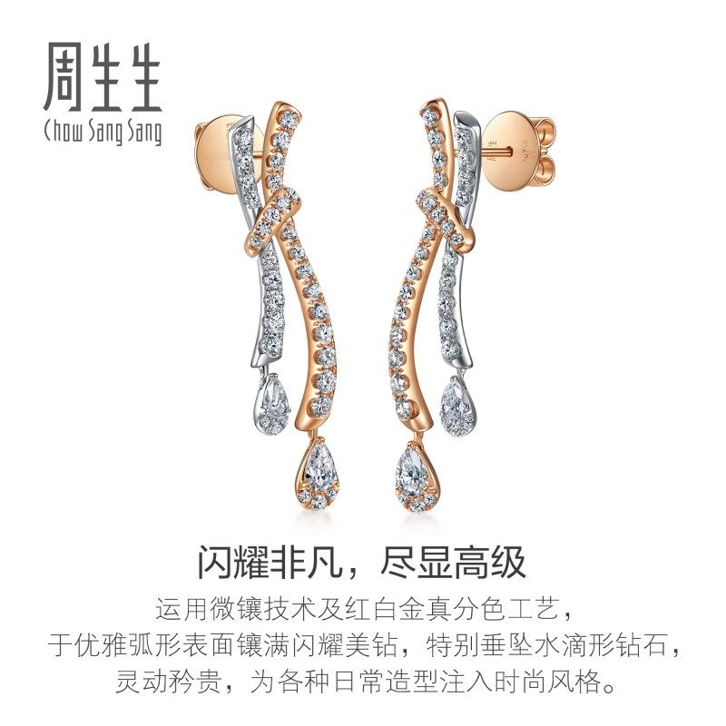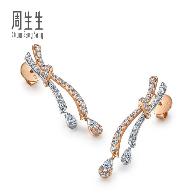 周生生18K白红分色黄金钻之颂都会之颂丝带水滴钻石耳钉96119E
