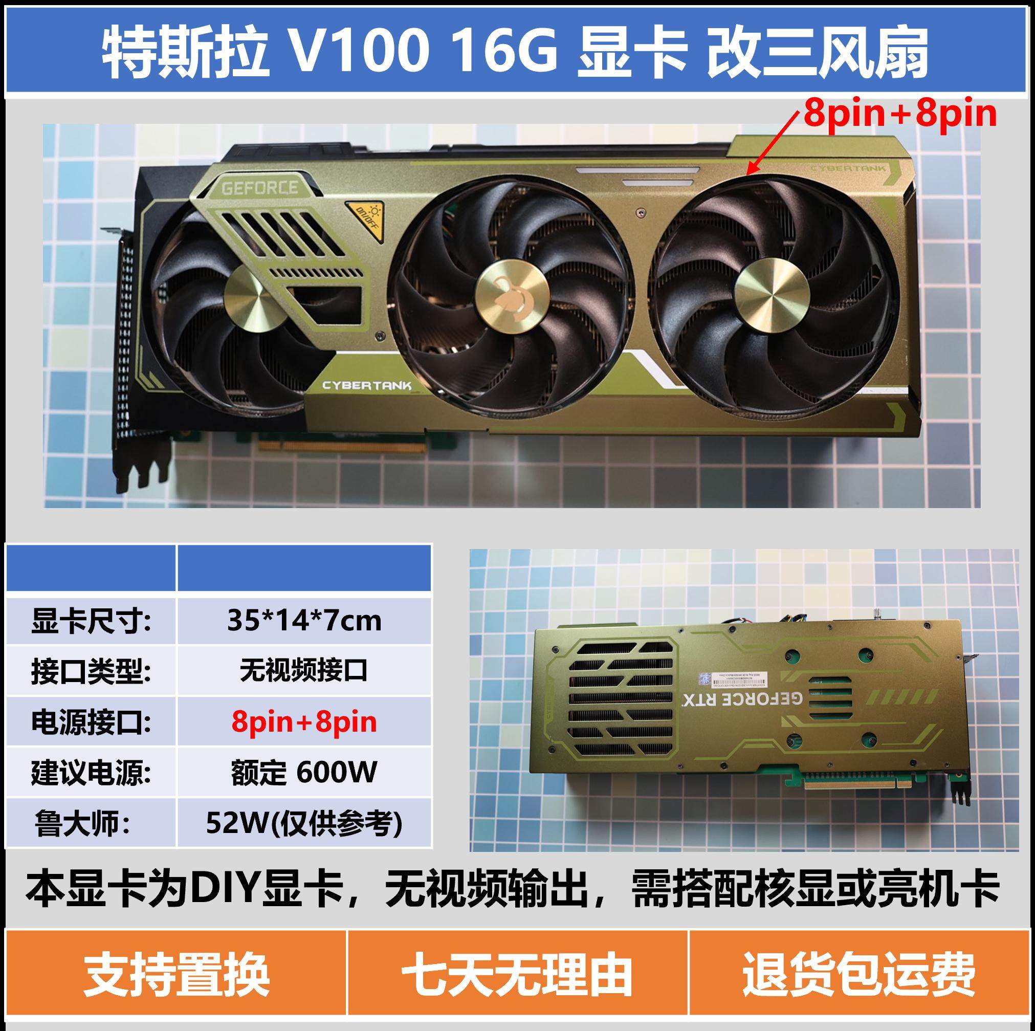 特斯拉V100 16G 32G 深度学习AI 炼丹显卡DIY改4090散热器显卡