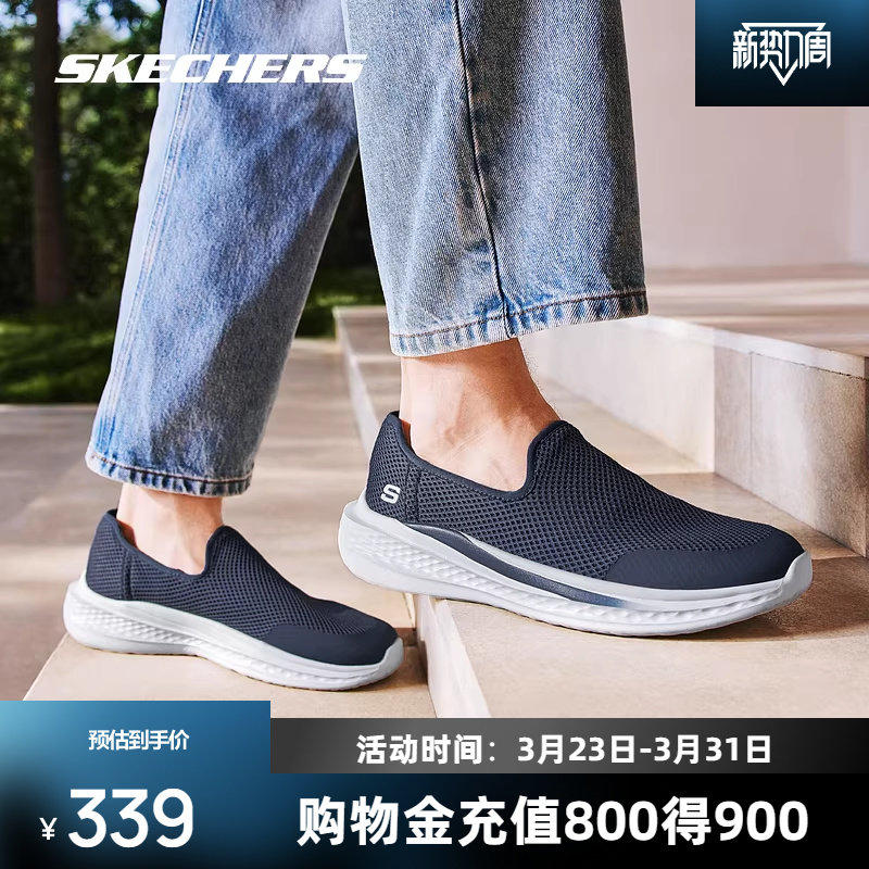 斯凯奇轻弹健步一脚蹬新款男士透气网布潮流轻薄舒适耐穿简约鞋子